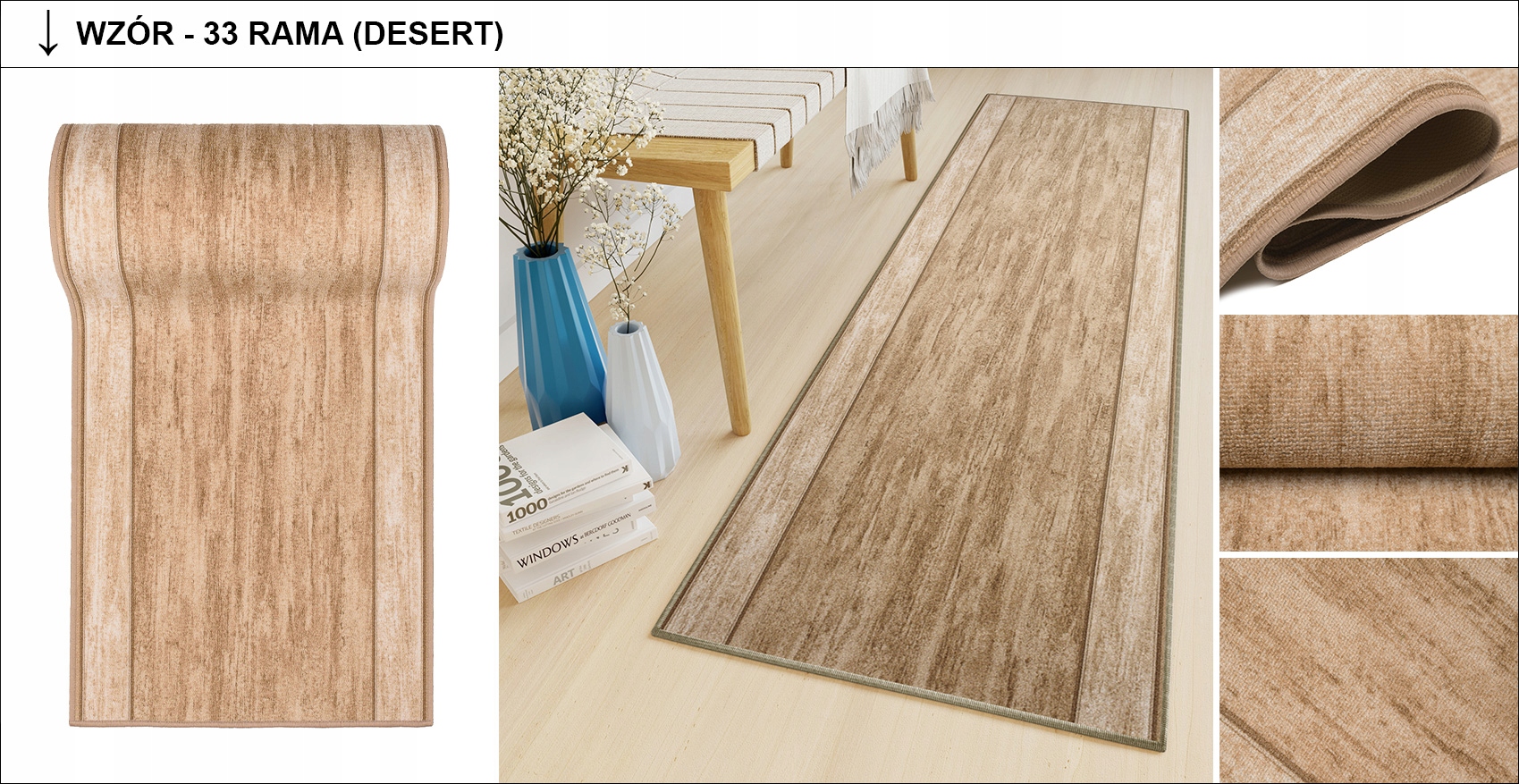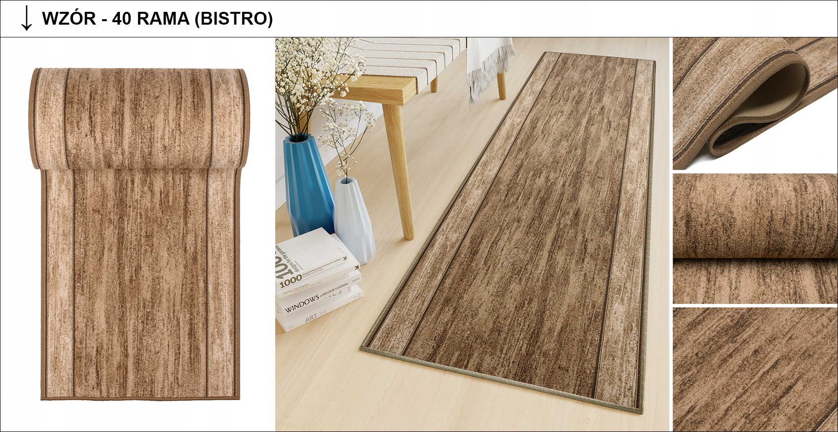 Раннер предназначен для различных типов гостиных, спален, детских комнат, коридоров, кухонных залов.