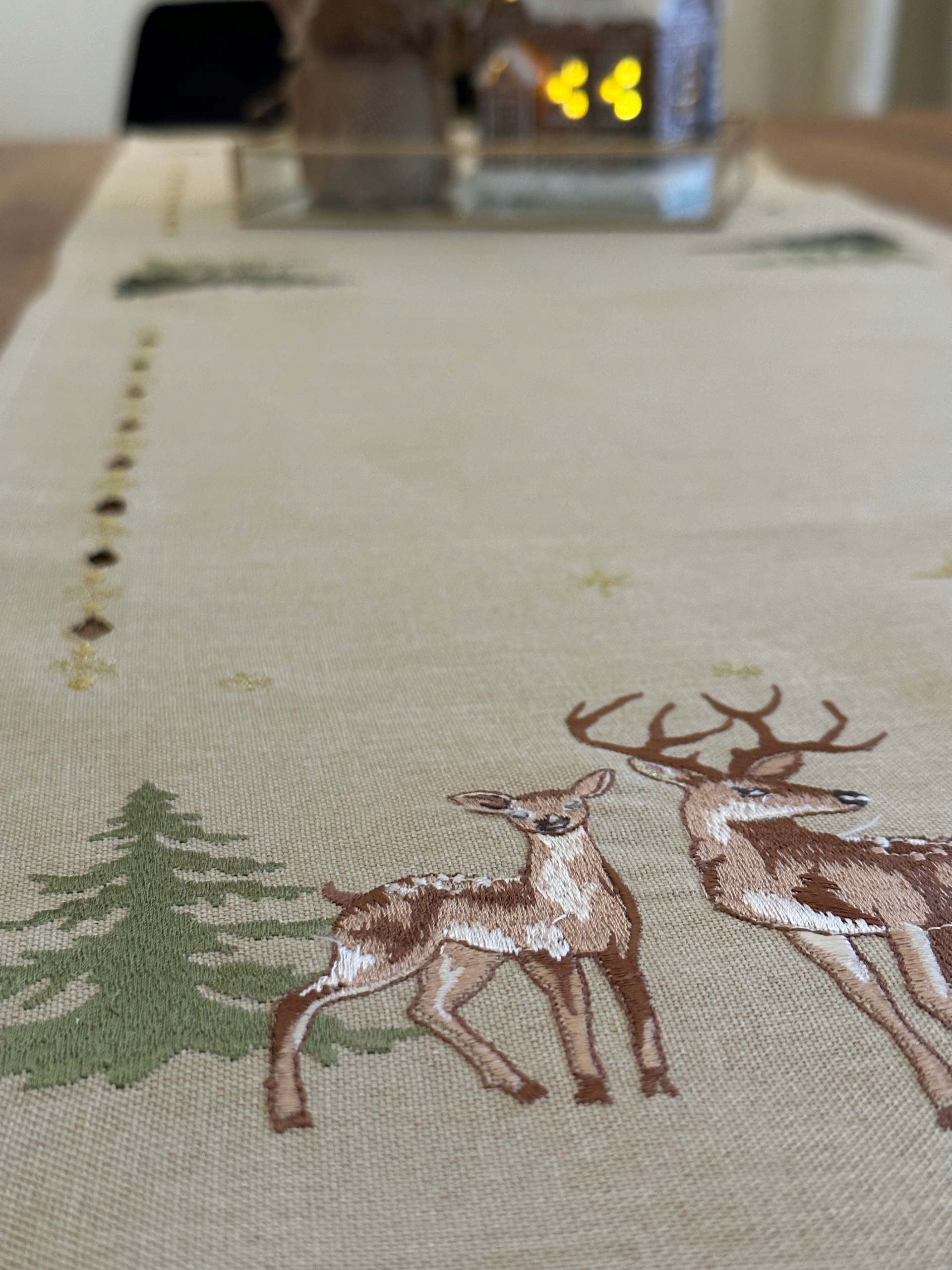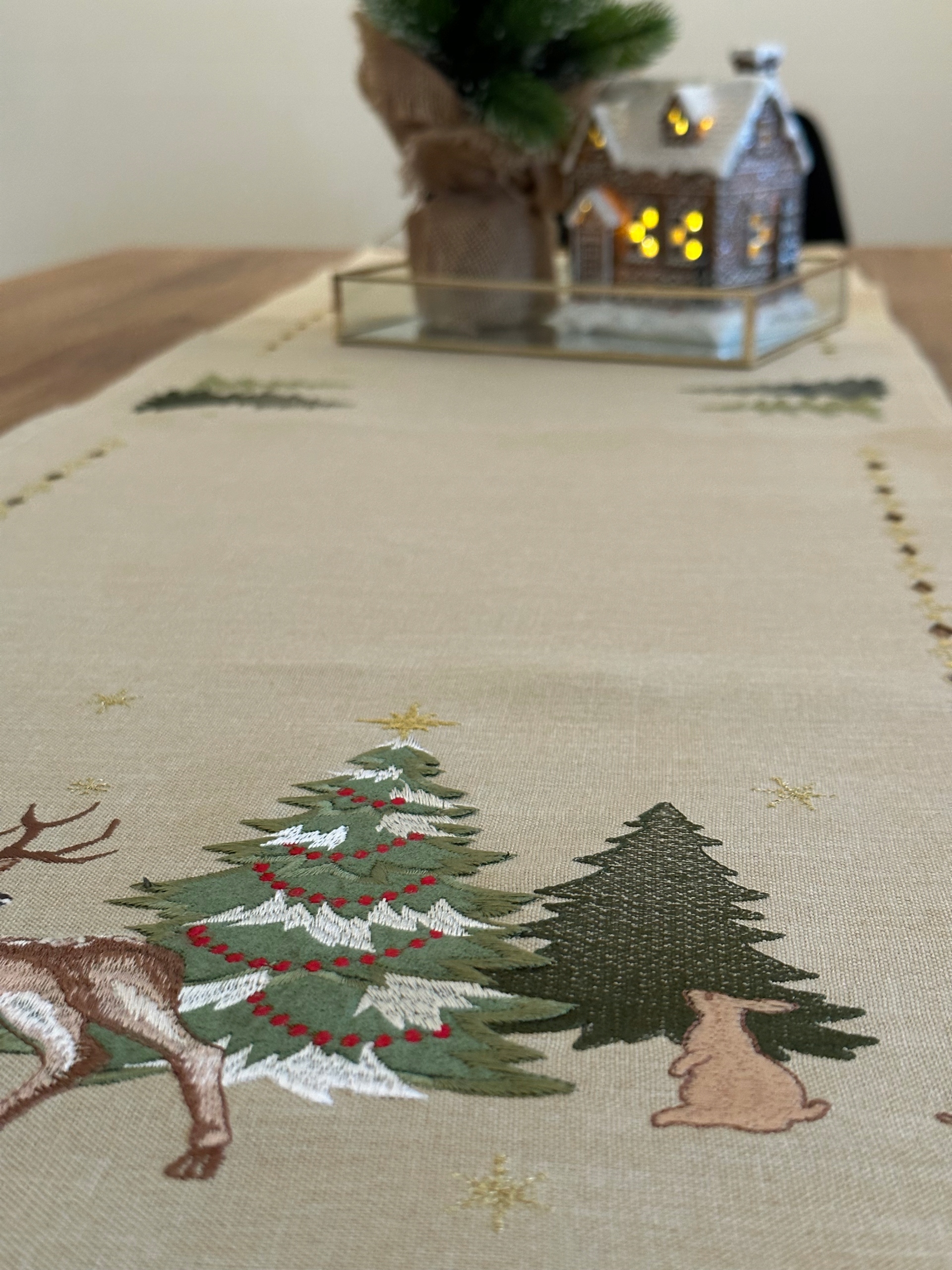 Доріжка різдвяна, вишита стулка на лавку, стіл | 40х175, бежевий, ПОДАРУНОК