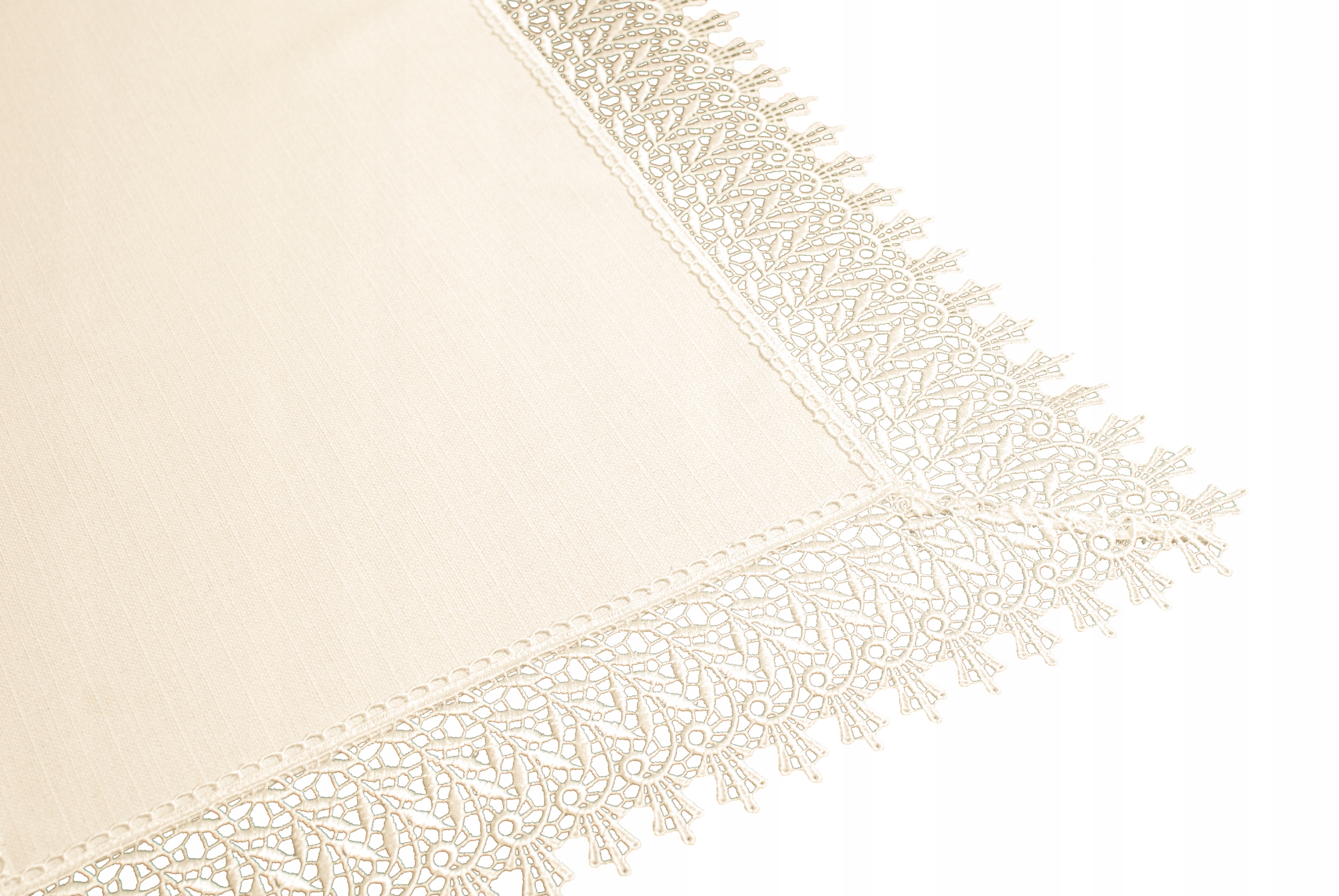 Эксклюзивная, плотная скатерть/дорожка/скатерть с видимым утолщением ниток для современных, стильных интерьеров, декорированная вшивной тканью цвета экрю, высоко- качественный гипюр из полиэстера, ширина примерно 11 см. В зависимости от наличия на складе внешний вид гипюра может незначительно отличаться.