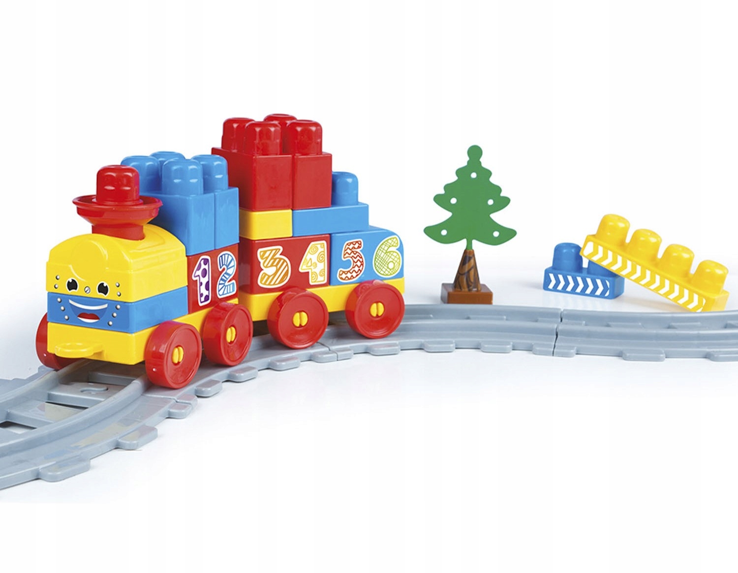 В набор входят блоки, из которых можно построить поезд, и железнодорожные пути, которые благодаря множеству форм дают безграничные возможности для построения интересных маршрутов с общей длина 1,45 м. Отличительной особенностью изделия является разнообразие элементов, их выразительные цвета и размер, адаптированный к возрасту ребенка. Каждый элемент набора легко соединяется друг с другом, и после сборки конструкция становится прочной и устойчивой. Прочное изделие, изготовленное из безопасного материала.