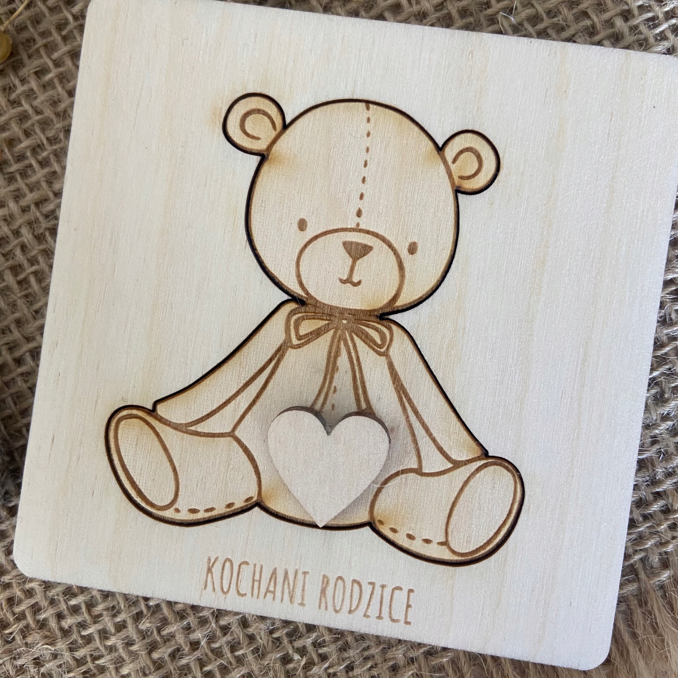 ❤️ На деревянной открытке выгравирован плюшевый мишка и надпись: УВАЖАЕМЫЕ РОДИТЕЛИ. р>