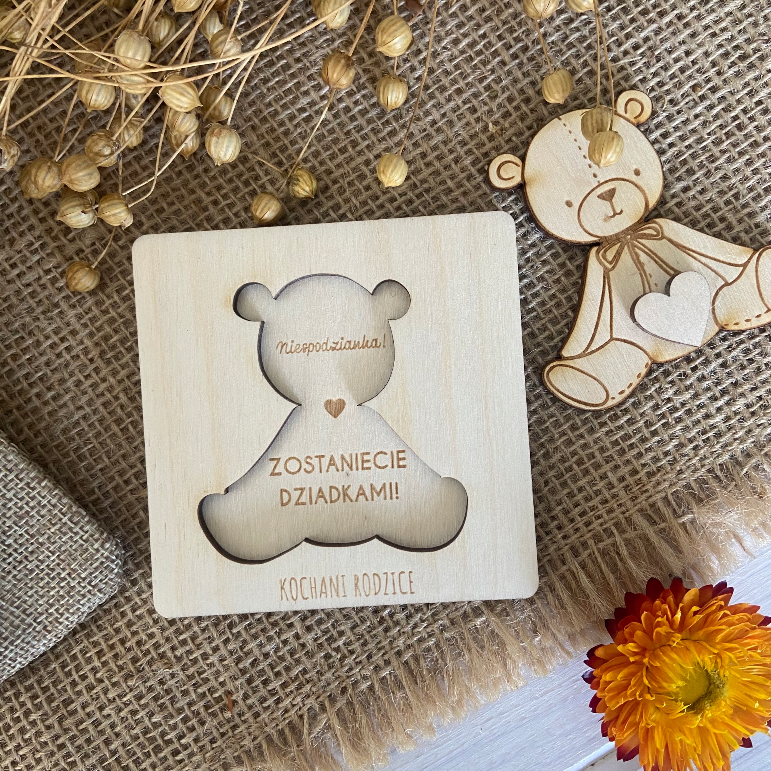 Деревянная открытка с надписью-сюрпризом: ВЫ СТАНЕТЕ БАБУШКОЙ И ДЕДУШКОЙ!