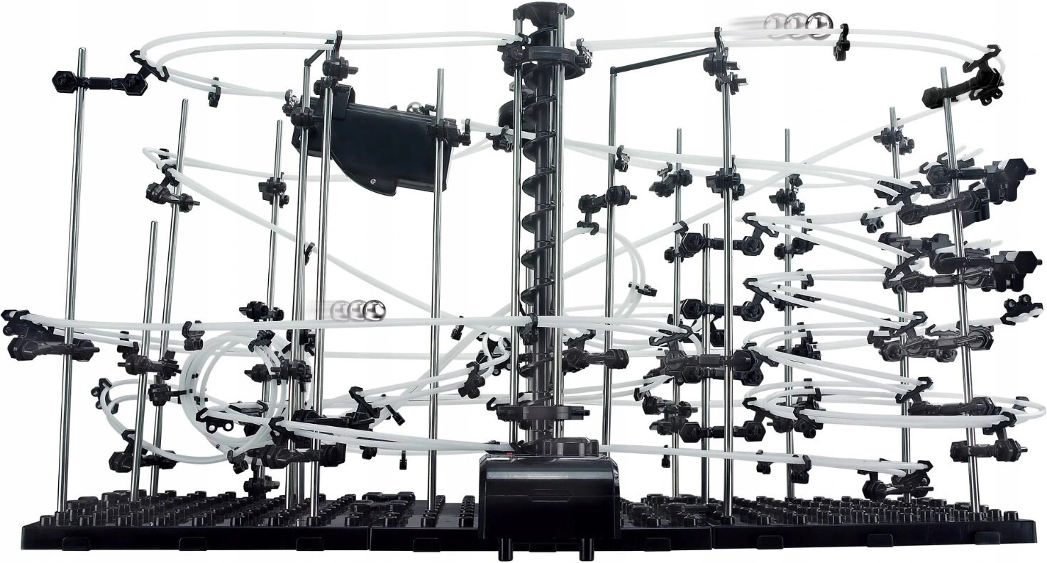 Вся конструкция сделана из металла, пластика и веревки. Объединение всех элементов в конечном итоге создает большую дорожку, по которой перемещаются металлические шарики. Они спускаются по петлям один за другим, пока не доберутся до лифта, который доставит их на самый верх здания, где веселье начинается снова. Spacerail — это 3D-головоломка, которая будет стимулировать ваши творческие способности, поскольку вы можете строить конструкции по своему желанию, не обязательно следуя шагам, включенным в инструкции.