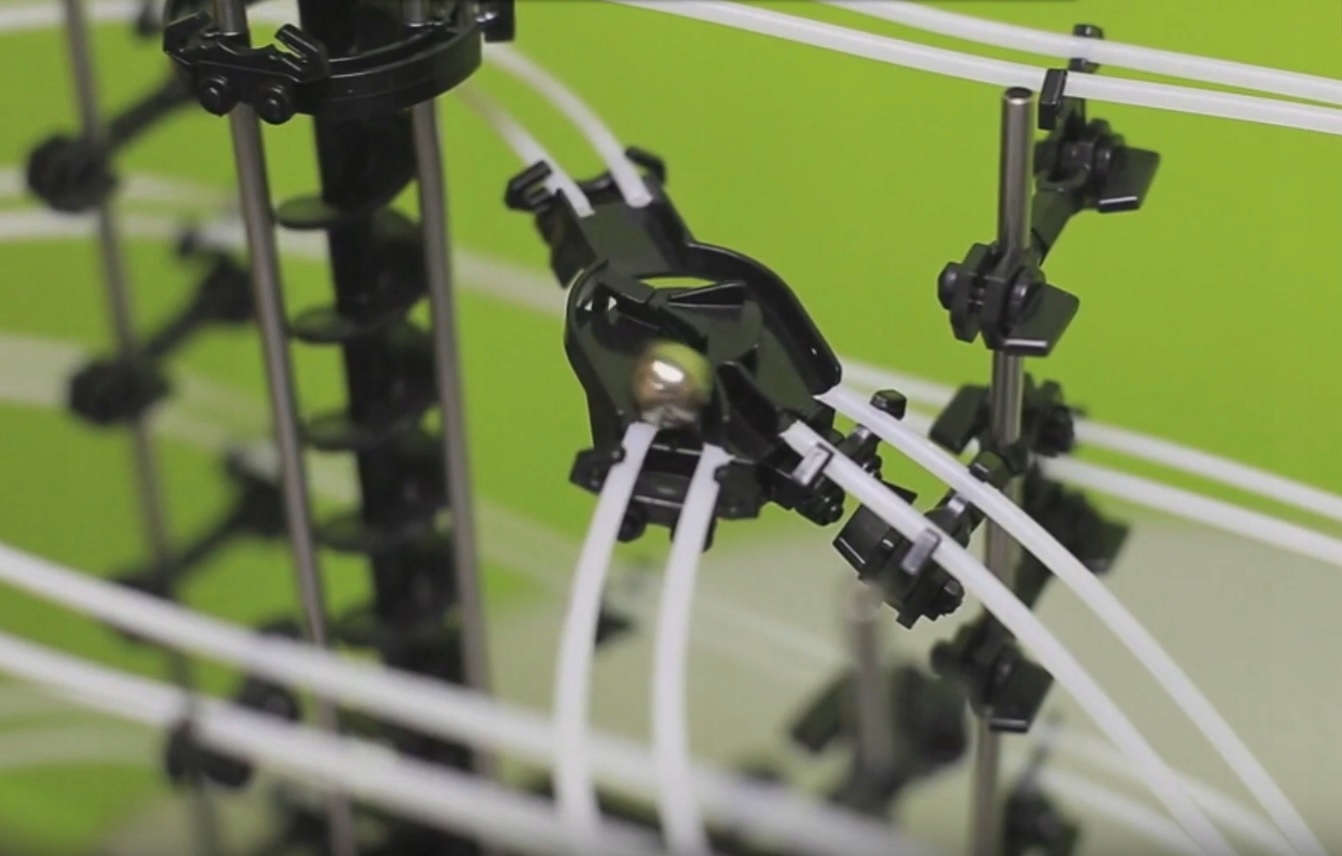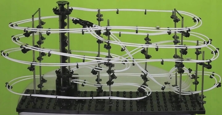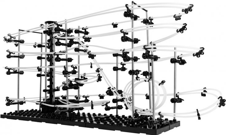 Вся конструкция сделана из металла, пластика и веревки. Объединение всех элементов в конечном итоге создает большую дорожку, по которой перемещаются металлические шарики. Они спускаются по петлям один за другим, пока не доберутся до лифта, который доставит их на самый верх здания, где веселье начинается снова. Spacerail — это 3D-головоломка, которая будет стимулировать ваше творчество, поскольку вы можете строить конструкции по своему желанию, не обязательно следуя шагам, включенным в инструкции.