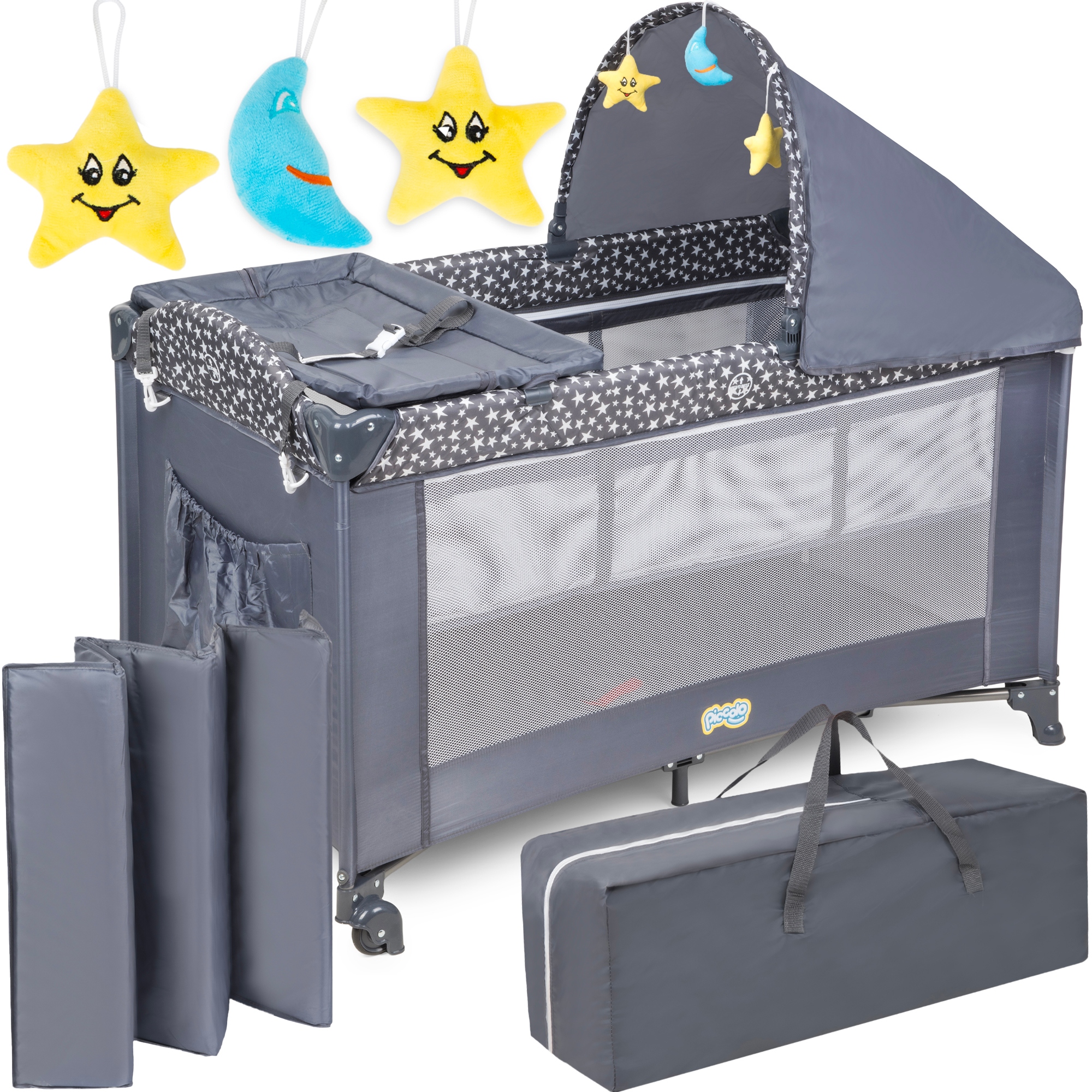 ДОРОЖНЄ ДИТЯЧЕ ЛІЖЕЧКО З ДАХОМ, МАТРАСОМ, ПЕРЕНАЛОМ, 125х65х78см