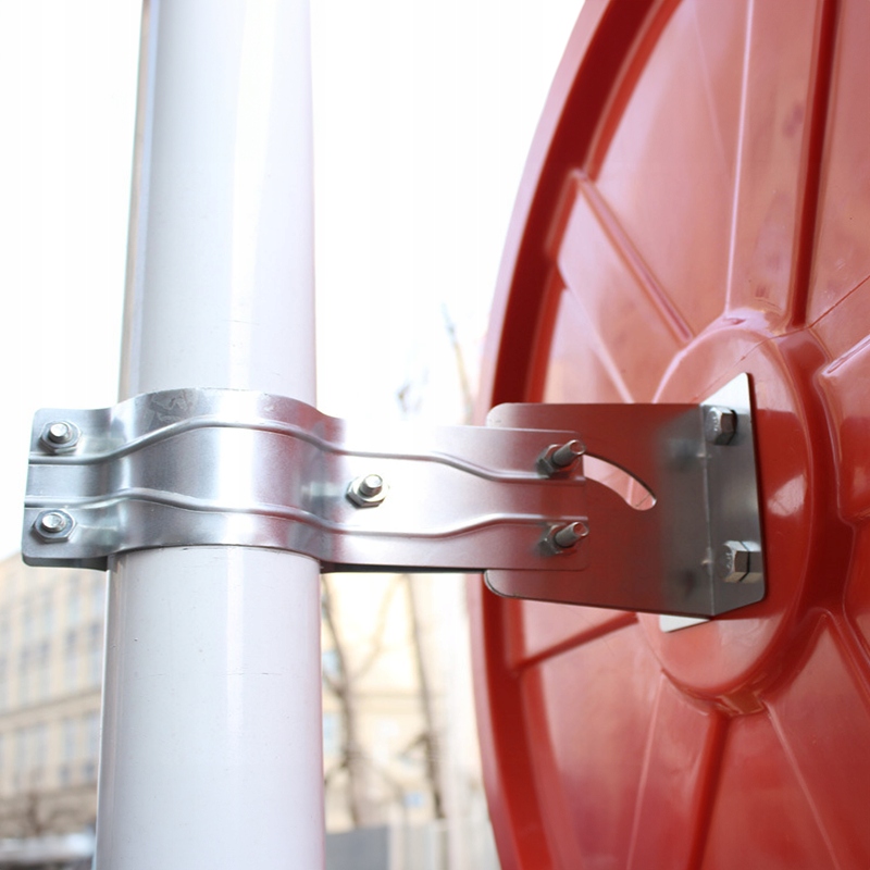 Благодаря прочной ручке зеркало можно легко закрепить на стене или другой подходящей поверхности, обеспечивая устойчивость и не допуская его перемещения и вращения во время использования. Его внушительный диаметр гарантирует широкий угол обзора, что позволяет эффективно контролировать дорожное движение или складские помещения даже на расстоянии.