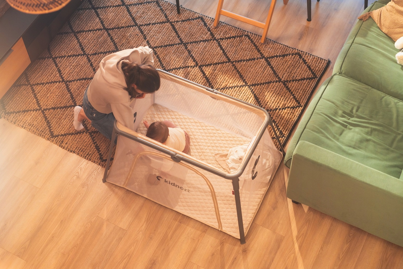 Прочная алюминиевая рама, прочные соединения и нескользящие ножки гарантируют устойчивость во время сна и игр. Изделие соответствует стандартам безопасности EN 1130:2019+AC:2020 и EN 12227:2010, что гарантирует постоянную безопасность ребенка.