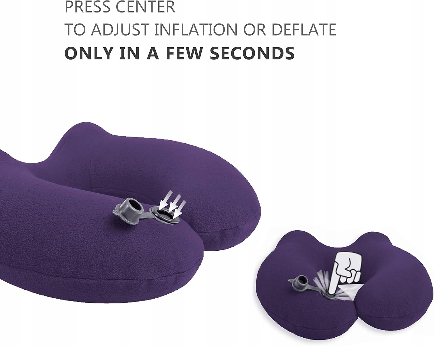 ПОДУШКА ДЛЯ ПУТЕШЕСТВИЯ НАДУВАННАЯ ПОД ГОЛОВУ, ФИОЛЕТОВАЯ + ЗАГЛУШКА