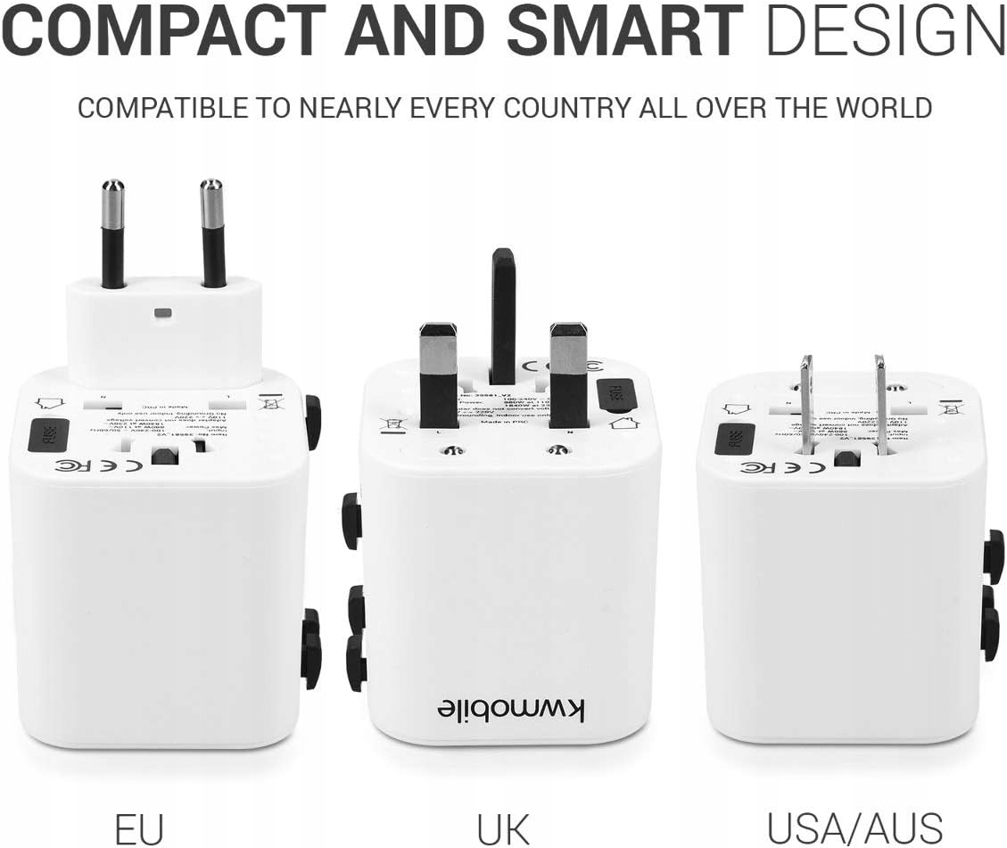 - Адаптер kwmobile подходит для розеток типов A, B, C, E, G, I, J и L, что делает его совместимо в 150 странах Европы, Африки и Азии, Америки и Южной Америки, а также в Австралии! Поддерживает 100–240 В, 6 А