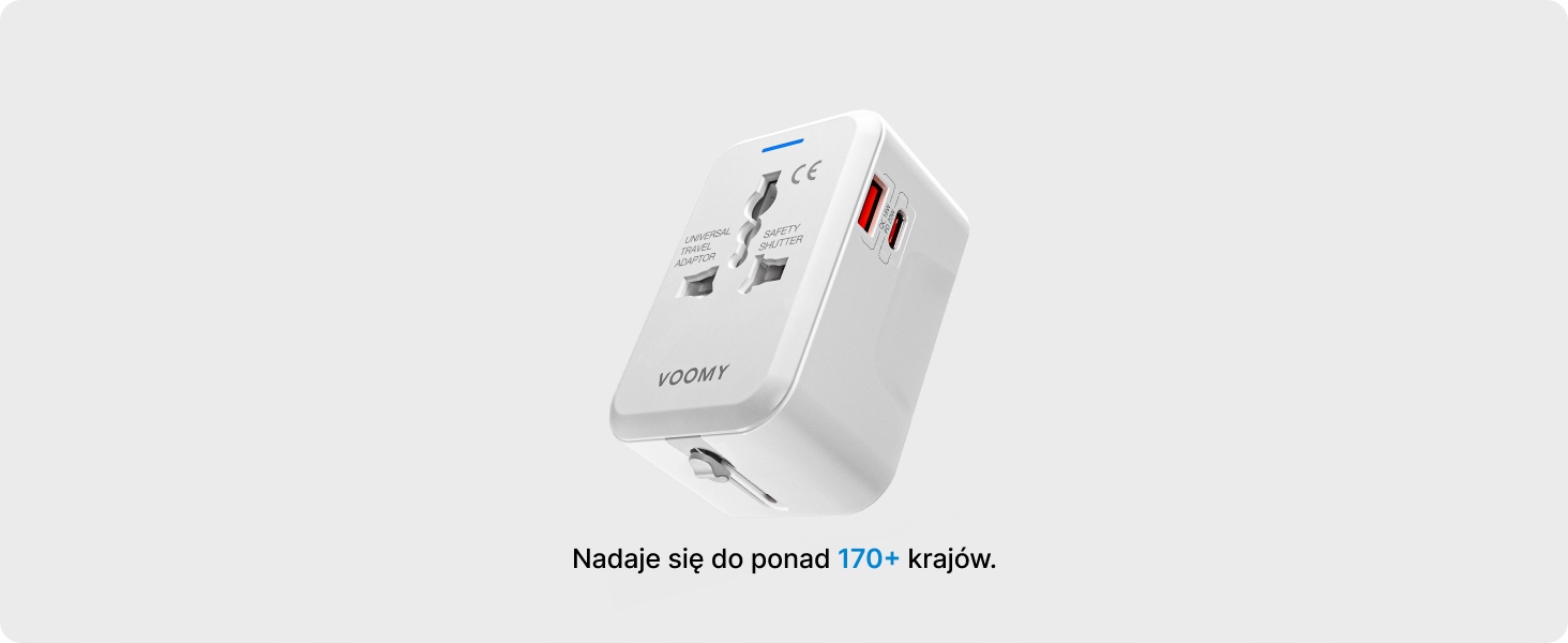 Voomy 20W Uniwersalna Wtyczka Światowa - 150+ krajów - USB-C & USB-A Biała