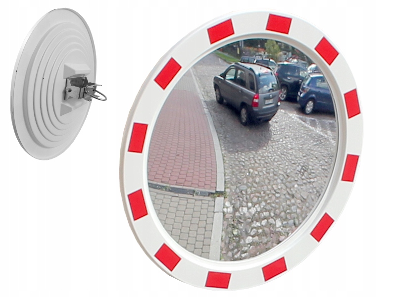 Зеркало повышает уровень безопасности пользователей объектов и мест, видимость которых затруднена из-за различных факторов. такие как здания, столбы, деревья или любые другие ограничивающие элементы инфраструктуры. Будет использоваться в местах, требующих дополнительного поля зрения, таких как перекрестки дорог, выходы из частных владений, подземные гаражи или парковки.
