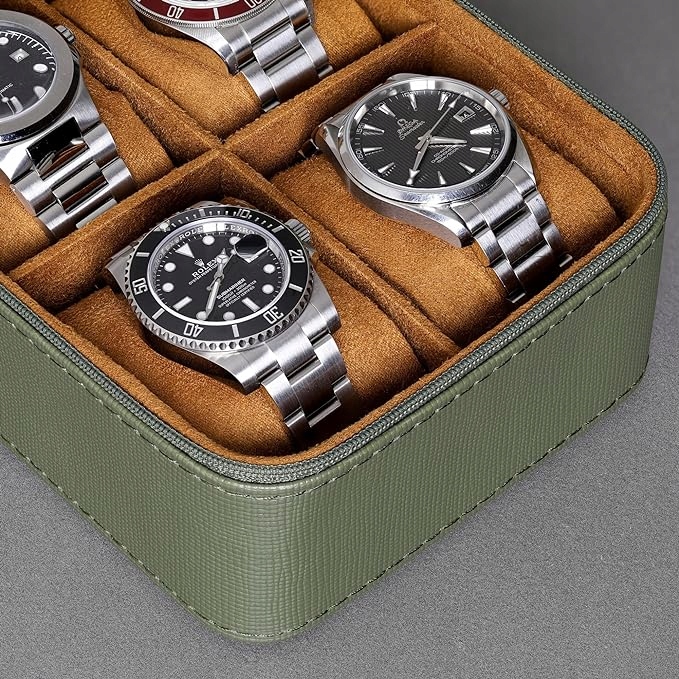 Мягкий внутренний материал защищает часы от царапин и вмятин, что делает этот футляр идеальным для хранения роскошных часов. Прочные пластиковые молнии обеспечивают безопасность и нетронутость часов.