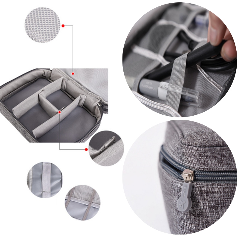 Независимо от того, часто ли вы путешествуете или просто хотите привести в порядок свои аксессуары дома, этот органайзер — решение для вас. Органайзер не только функциональный, но и стильный. Серый цвет вневременной и элегантный, а молния обеспечивает легкий доступ ко внутреннему пространству. Внутри 9 отделений и 5 карманов, в которых поместятся все ваши небольшие электронные устройства и аксессуары.
