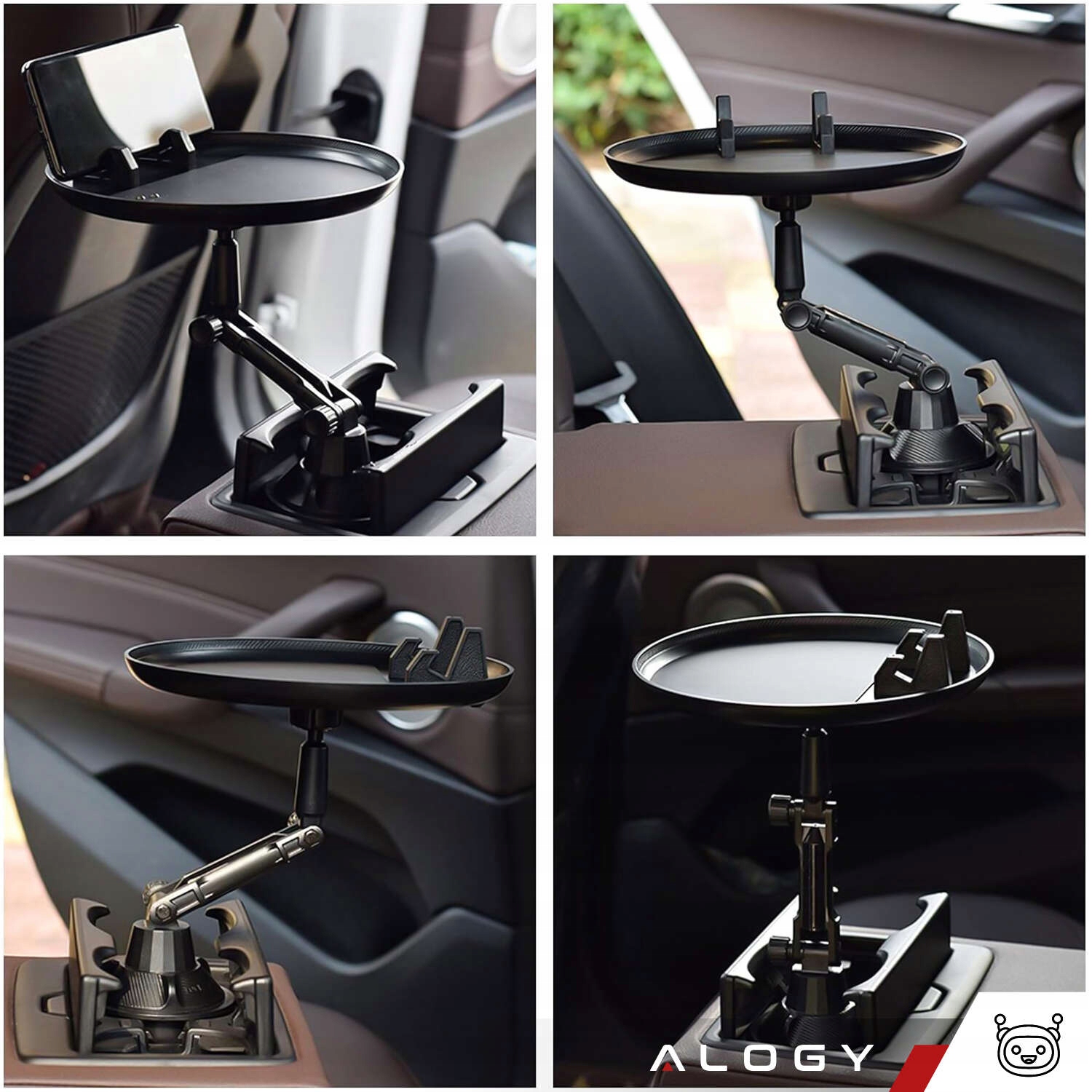 ▶️ Поднос для дорожного автомобильного столика, подставка для телефона, автомобильный держатель для еды Alogy Cup Holder, черный