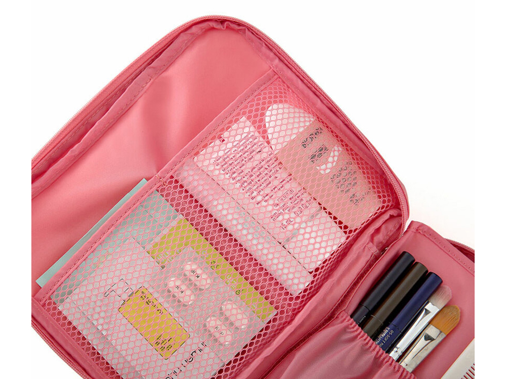 Дорожная косметичка — идеальное решение для хранения вашей косметики в порядке. В органайзере для путешествий непременно поместятся все косметические средства, такие как пудра, мелки, помады, принадлежности для бритья и многое другое.