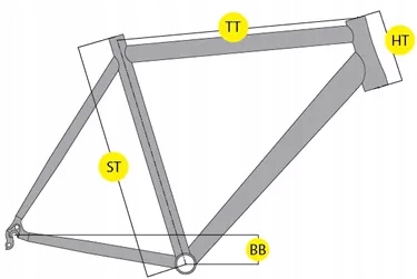 - Нижняя труба: (центр головки рамы - центр каретки): 59,5 см
