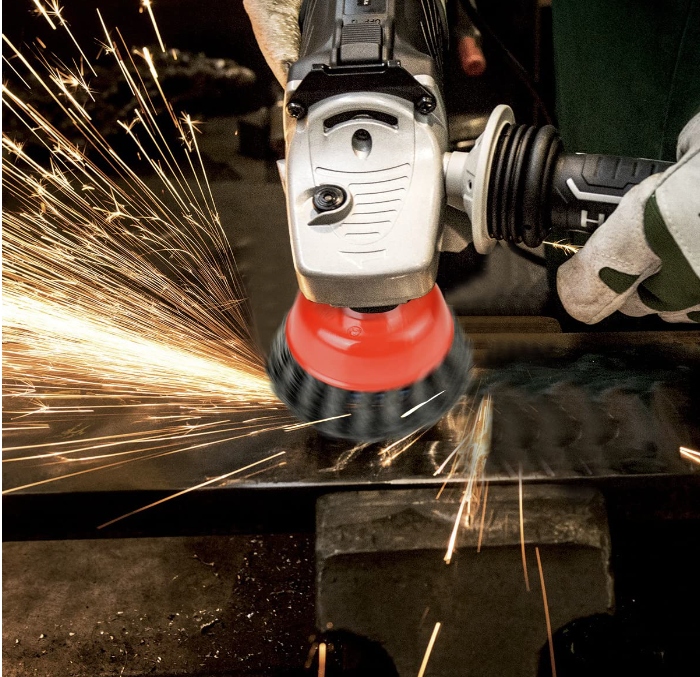 - Тип проволоки: Скрученная проволока, которая увеличивает агрессивность чистки и долговечность. Сборка, совместимая с большинством угловых шлифовальных машин, доступных на рынке.