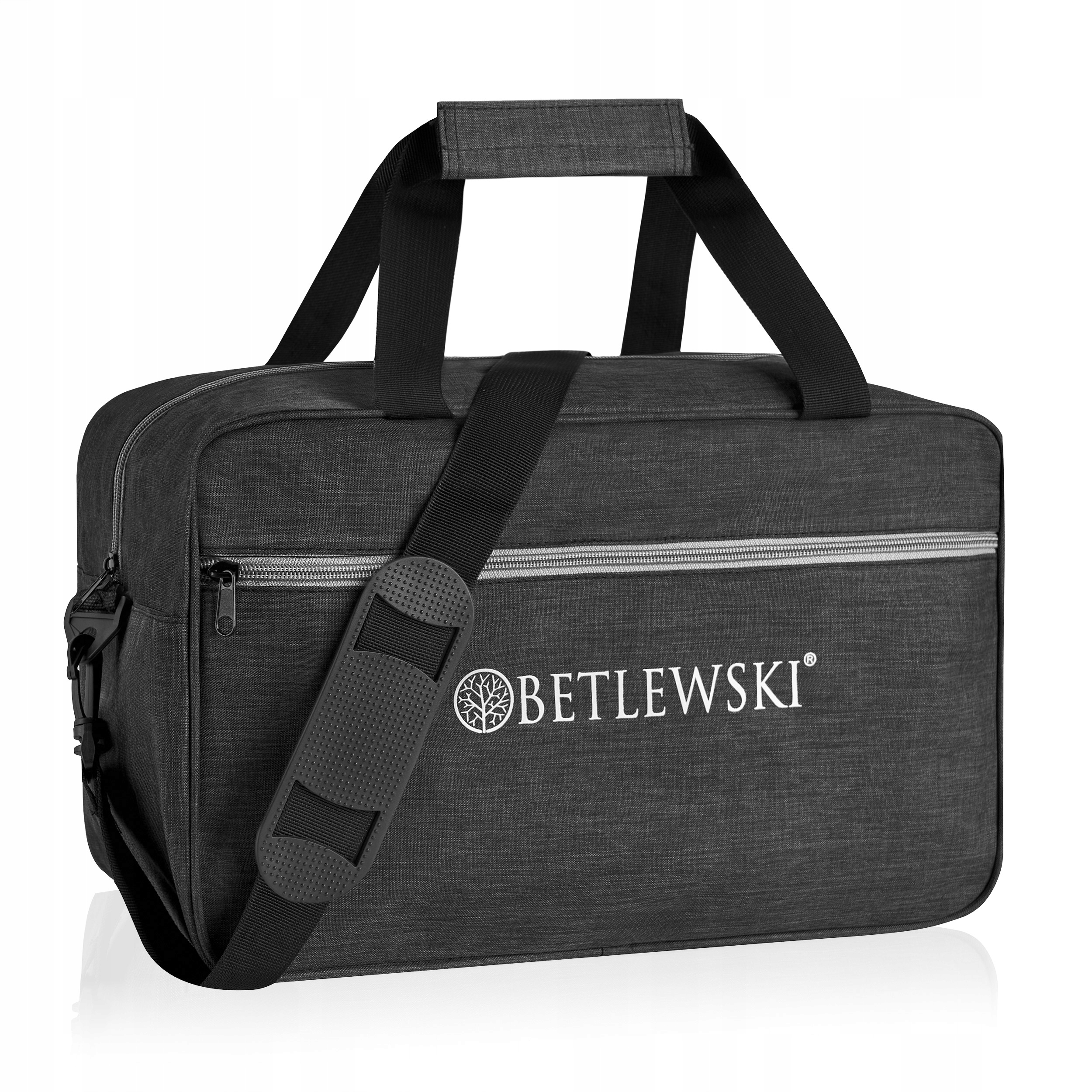 На передней части сумки напечатан белый логотип бренда Betlewski®. Это гарантия того, что мы приложили максимум усилий и продумали все детали, чтобы вы могли наслаждаться необычайной функциональностью сумки во время каждой поездки.