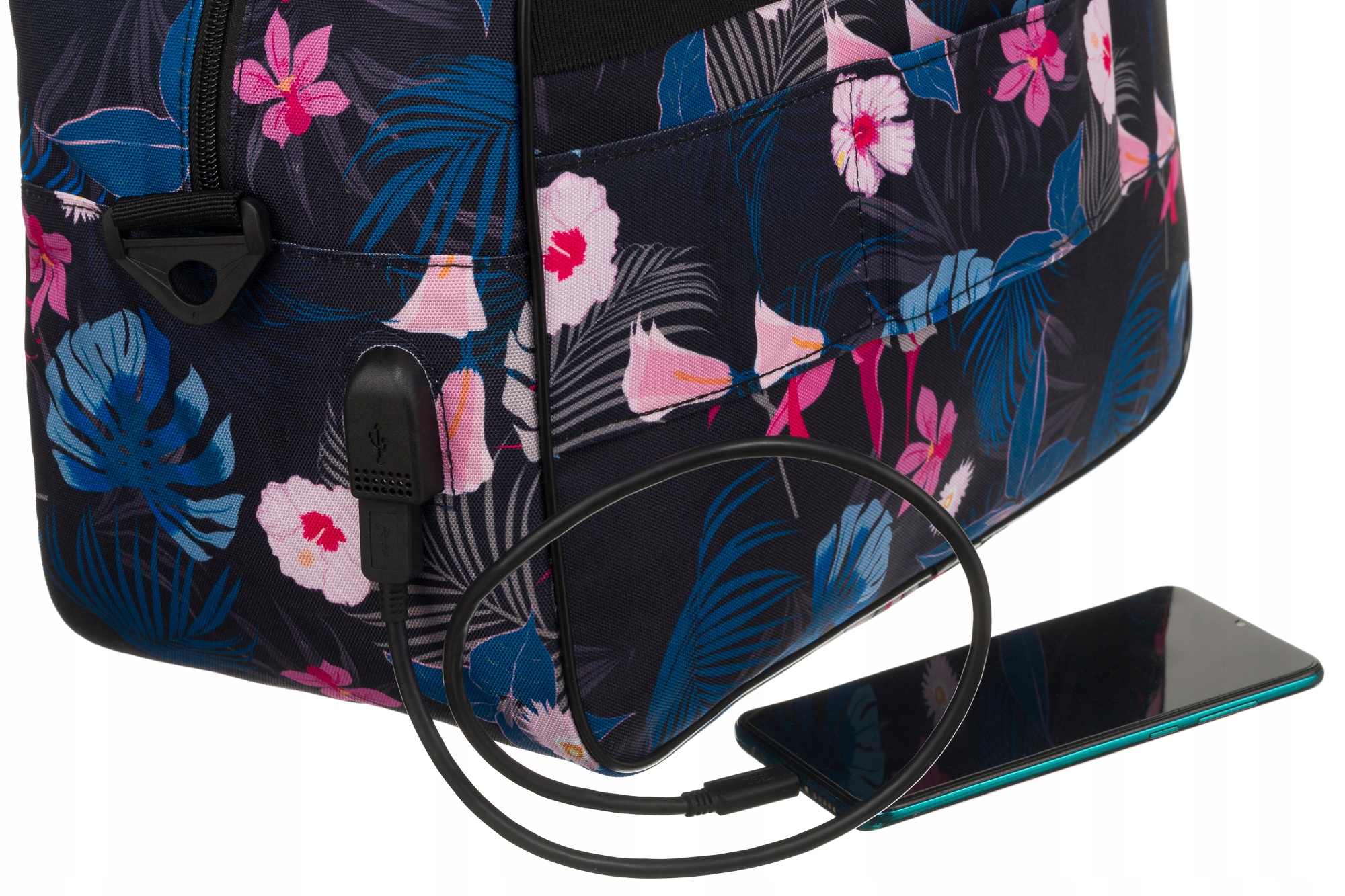 С внешней стороны сумки расположен USB-порт. Просто подключите USB-кабель от сумки к зарядному устройству, и в USB-порте появится электричество.