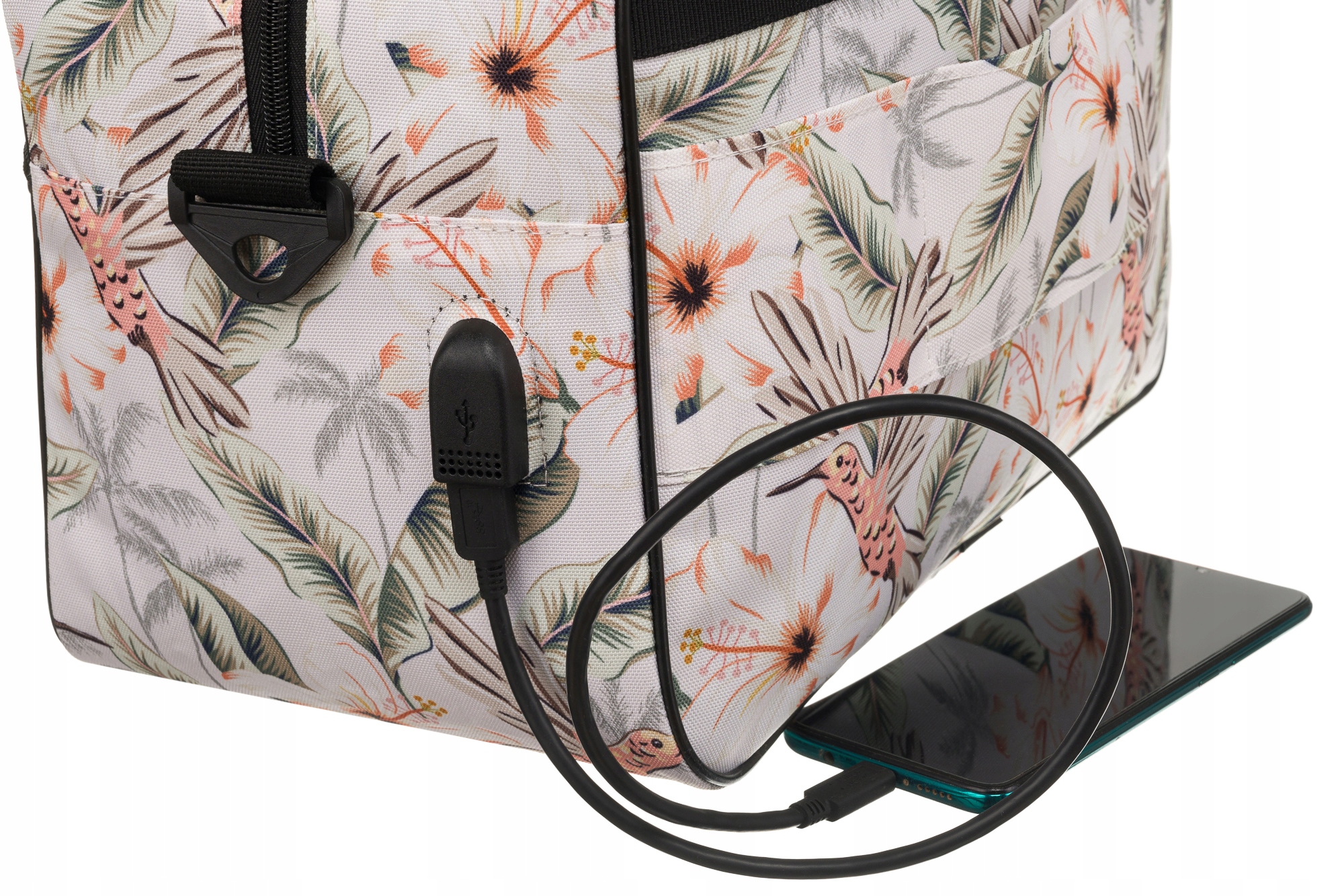 С внешней стороны сумки расположен USB-порт. Просто подключите USB-кабель от сумки к зарядному устройству, и в USB-порте появится электричество.