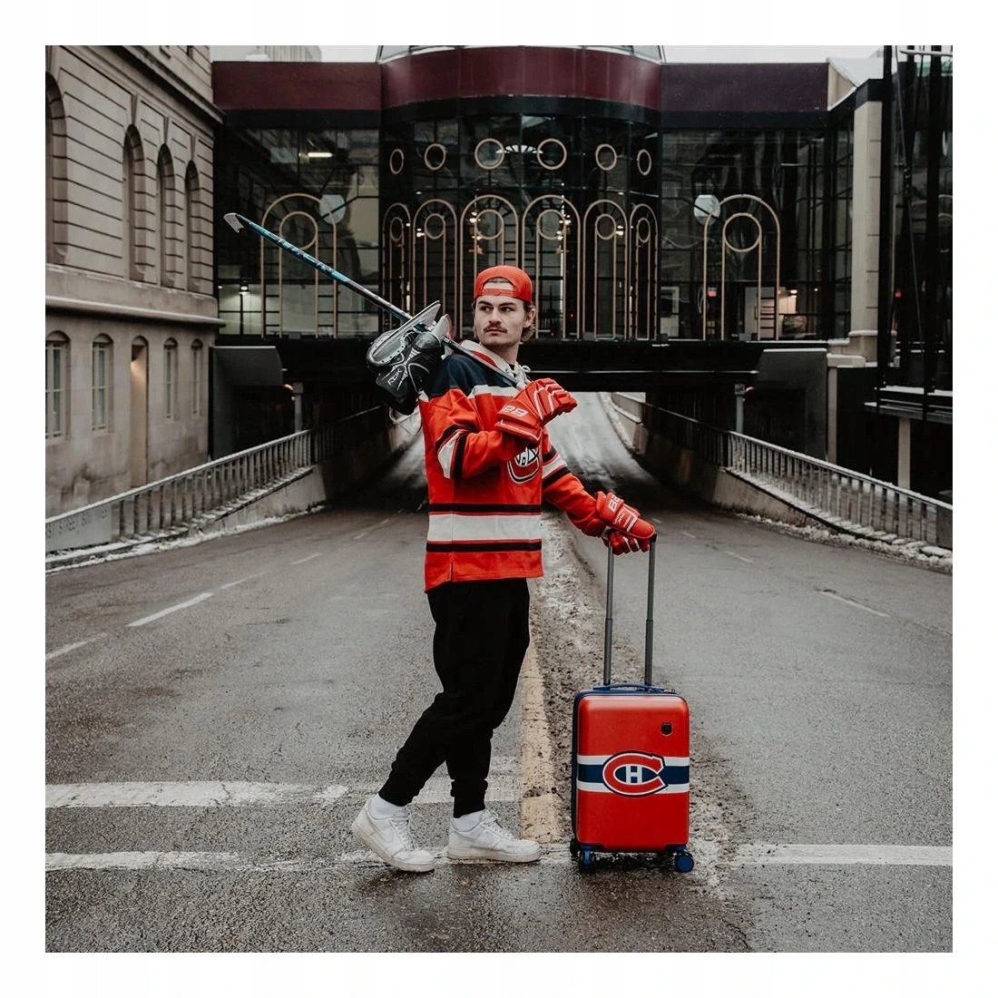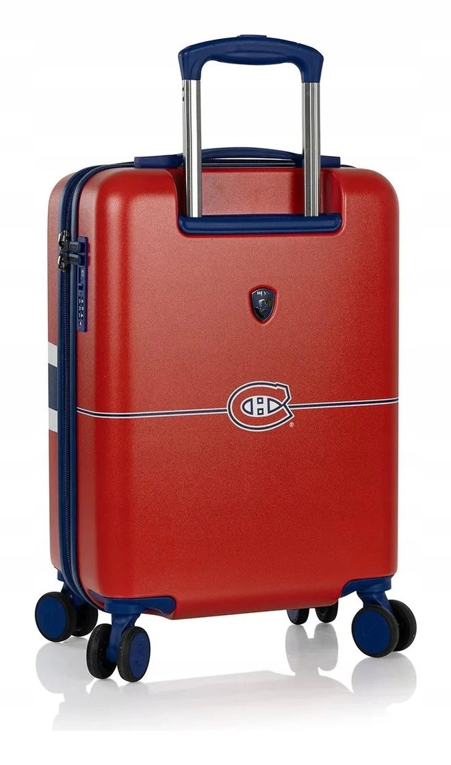 Официально лицензированный четырехколесный чемодан с логотипом Montreal Canadiens, оснащенный встроенным замком TSA и расширителем.