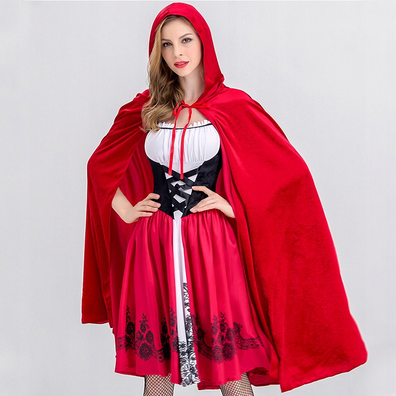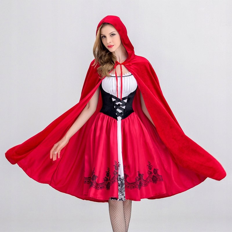 В комплект входит: красная накидка с капюшоном и шнуровкой, лиф корсетного типа (корзина, бедра и чулки в комплект не входят).