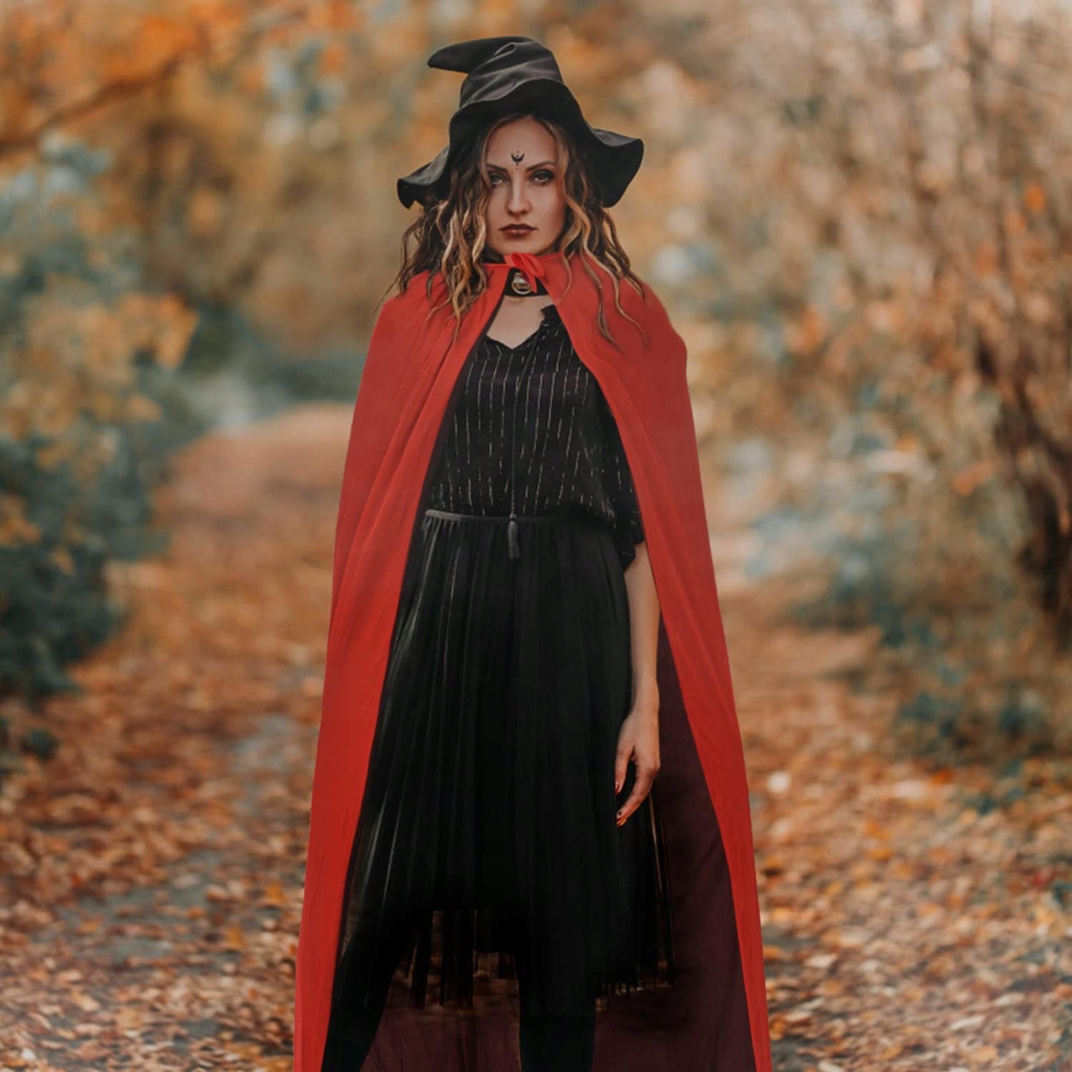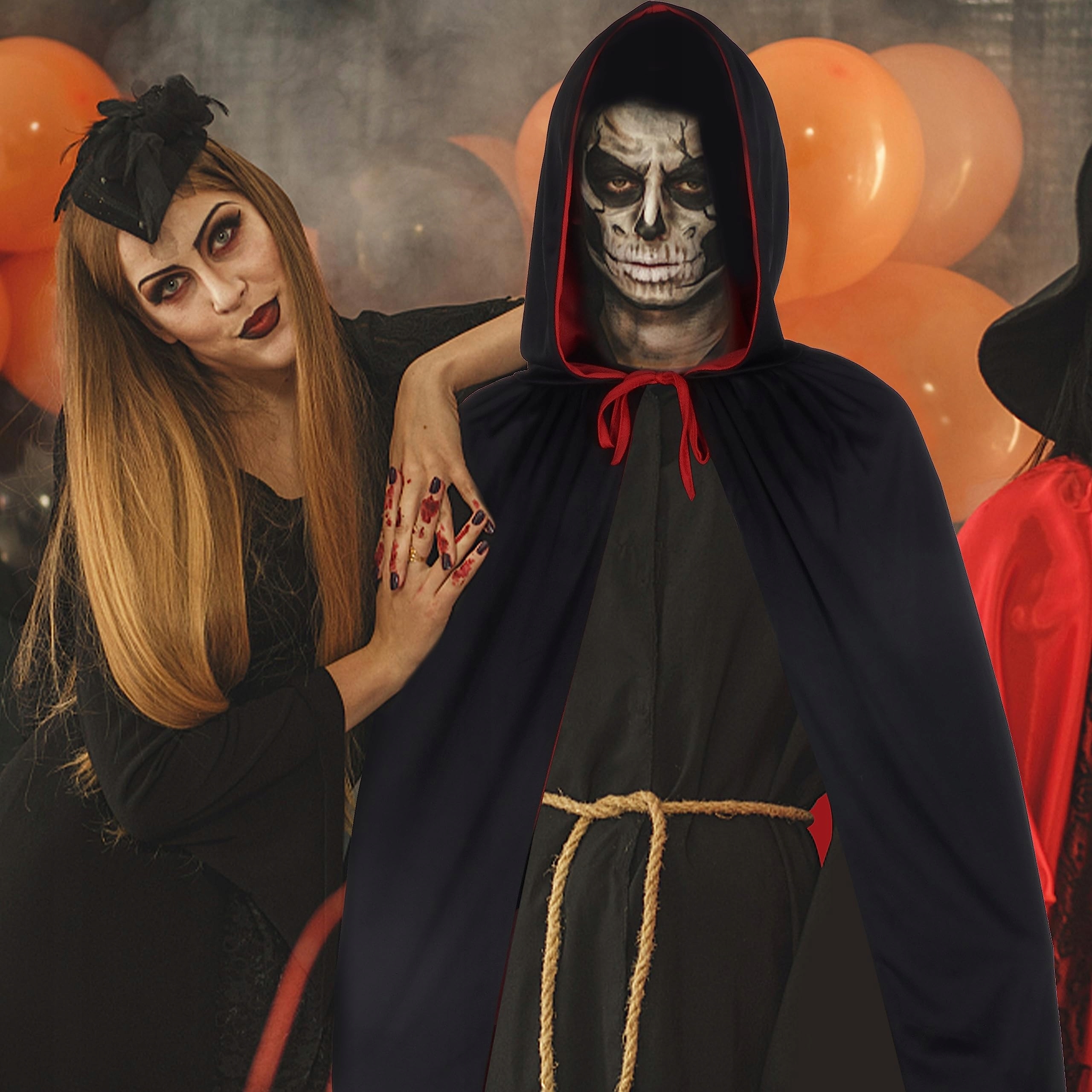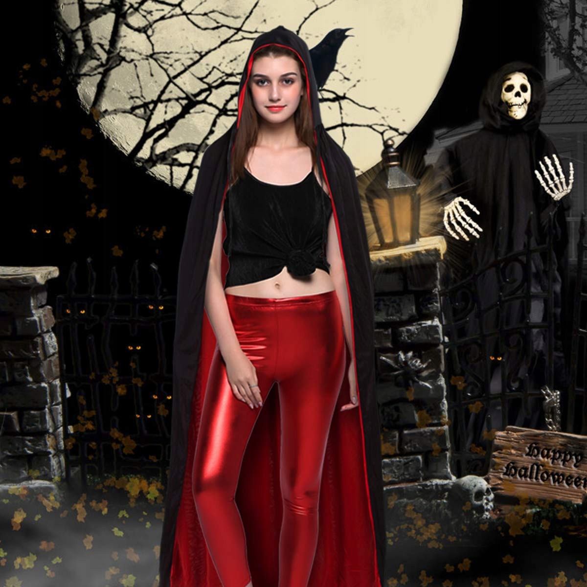 👍👍👍【Двусторонний плащ】Висячий вампир поставляется с черно-красным двусторонним плащом, который можно носить с собой. Капюшон на накидке большой и свободный, а капюшон достаточно большой, чтобы вместить голову большинства размеров.