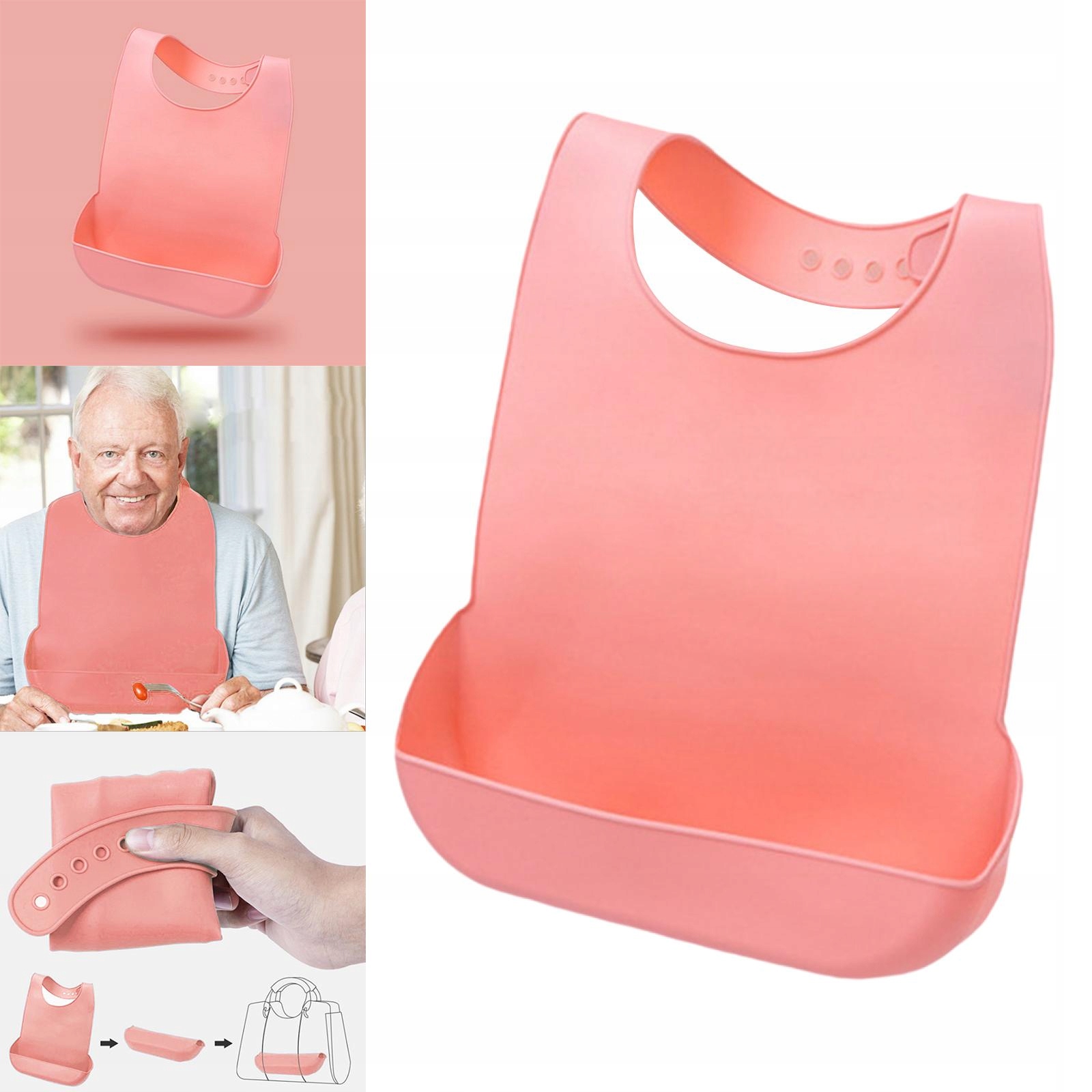 Нагрудник для взрослых с улавливателем крошек, легко чистящийся для пожилых людей с ограниченными возможностями. М Розовый