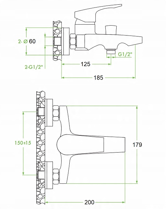 - Диапазон от стены: 38 см (до центра насадки душа)