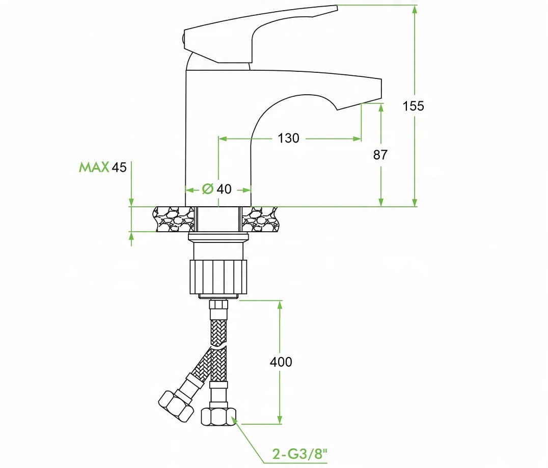 - ШЛАНГ: 150 см и 40 см стальной с двойной оплеткой