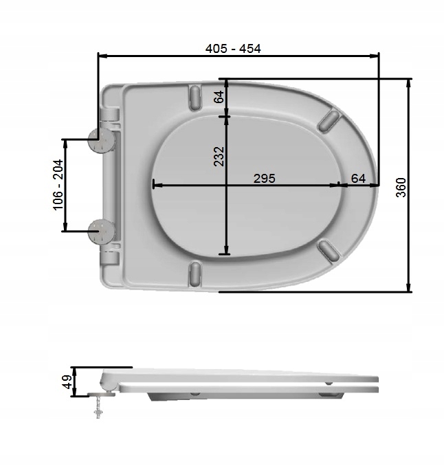 - Комфорт - амортизаторы, установленные на обеих петлях щита, позволяют быстро снять его с помощью защелки и снять крышку. и сиденье медленно опускается.