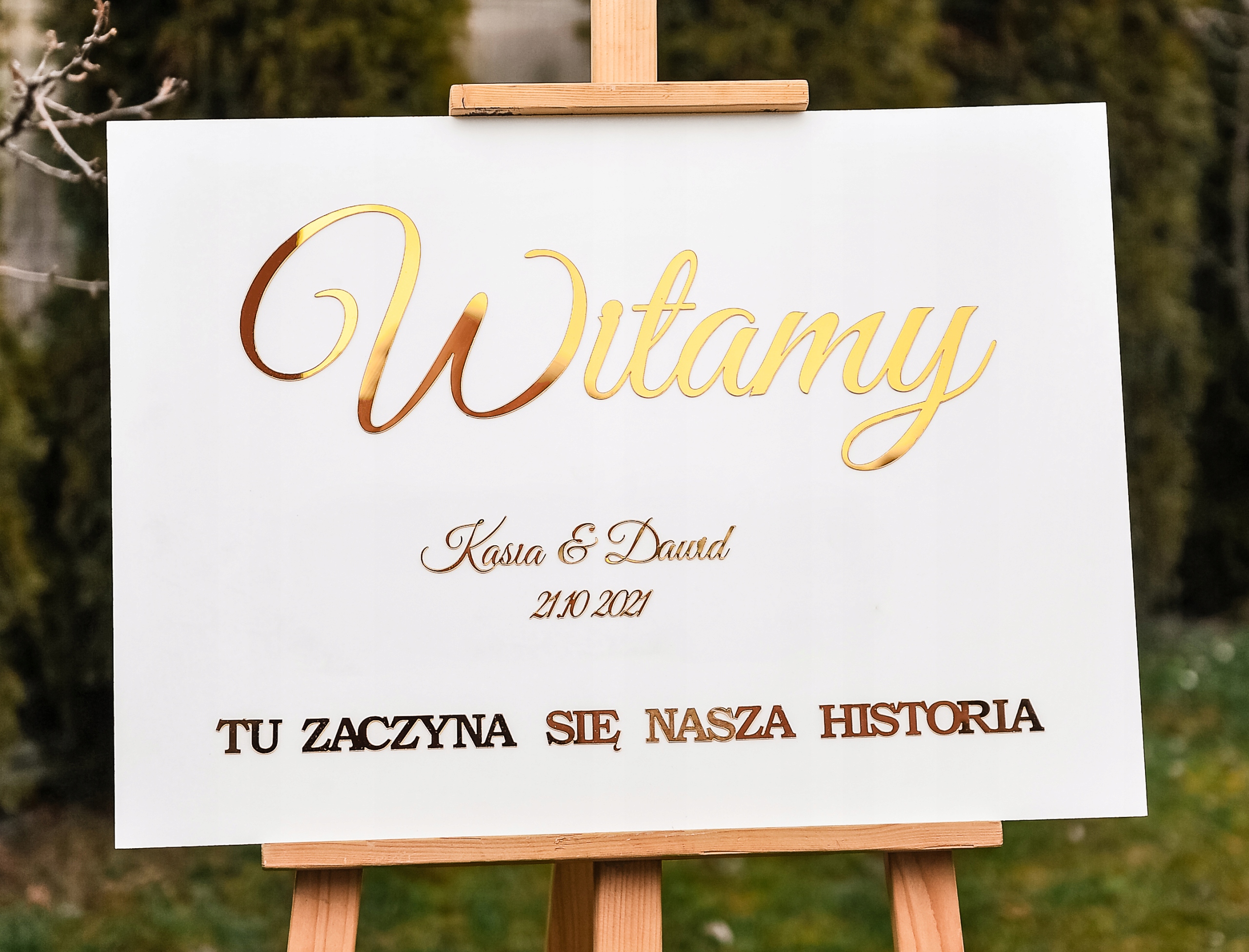 Красивое украшение, приветствуя гостей перед домом, а также перед свадебным залом. Субтитры, изготовленные методом лазерной резки от золотого зеркала и приклеены к белому MDF