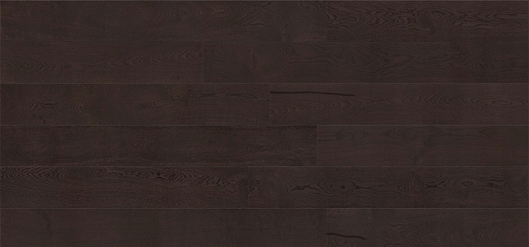 Окрашенный пол интенсивного шоколадного оттенка. Структура древесины подчеркнута брашированием. Доски с четко скошенными краями (фаска).