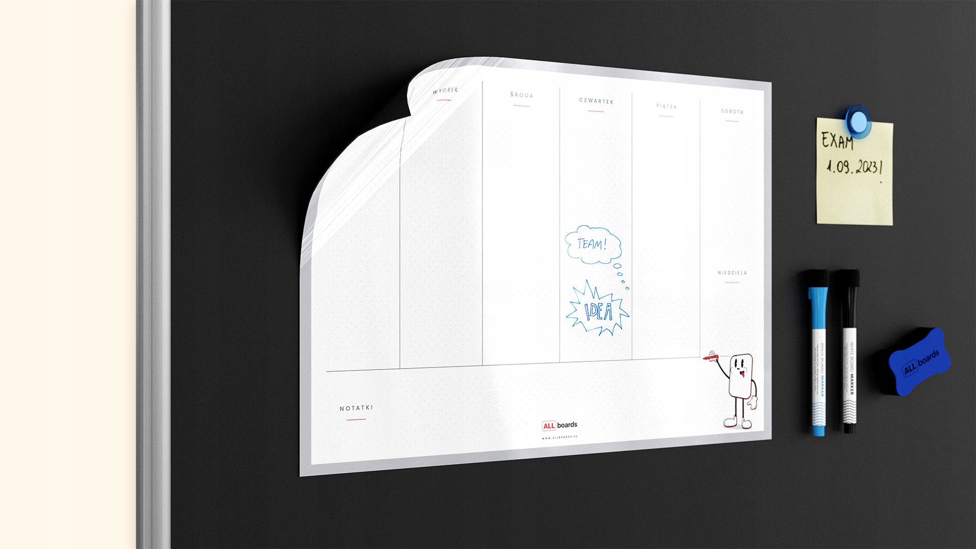Примечание: Магнитный планировщик не прикреплен к стеклянным доскам!