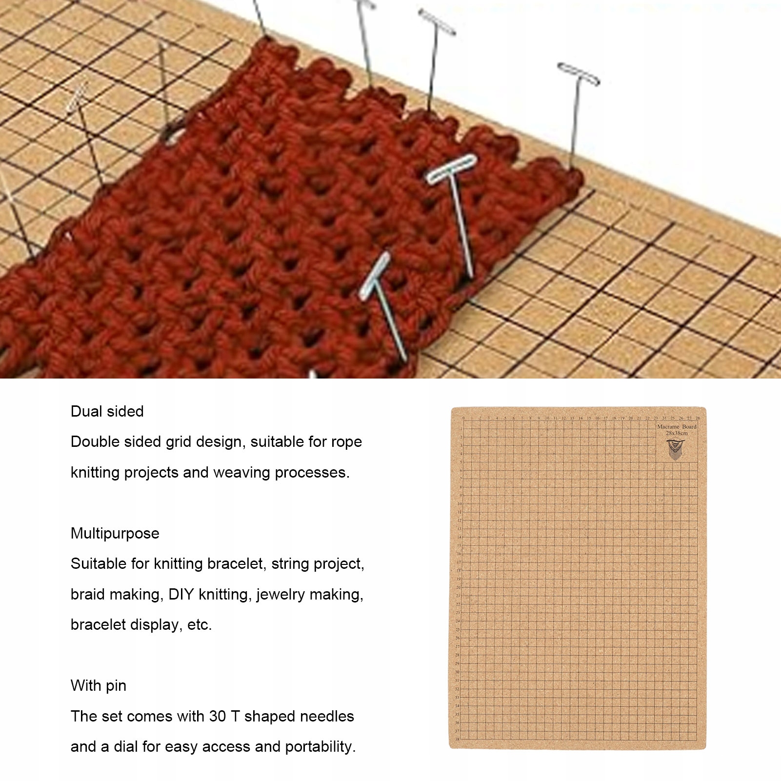 1. ДВУСТОРОННИЙ ДИЗАЙН: доска для макраме имеет двусторонний сетчатый рисунок, что делает ее подходящей для различных проектов макраме и ткацких поделок.
