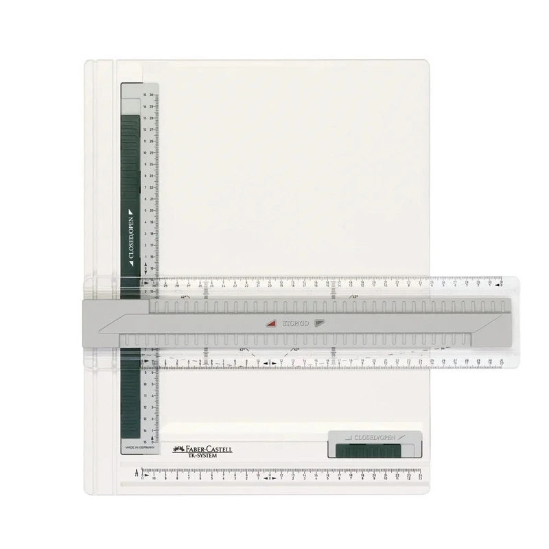 Платы чертежей Faber-Castell изготовлены из высококачественных пластиковых материалов, которые устойчивы к ударам и трещинах и очень долговечны. Быстрый выпущенный бумажный зажим очень сильный и, следовательно, может безопасно поддерживать несколько листов бумаги. Перемещение параллельных линий и чертежных головок с регулируемыми углами позволяет точно рисовать параллельные линии и углы