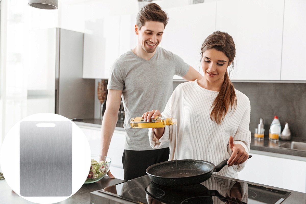 ☑️ В отличие от деревянных или бамбуковых досок, наша разделочная доска из нержавеющей стали не оставляет следов порезов, канавок или проколов в результате ежедневного использования и не впитывает жидкости. Это делает ее более безопасным и гигиеничным вариантом для вашей кухни, значительно уменьшая беспорядок и беспорядок, обычно возникающий при использовании других разделочных досок.