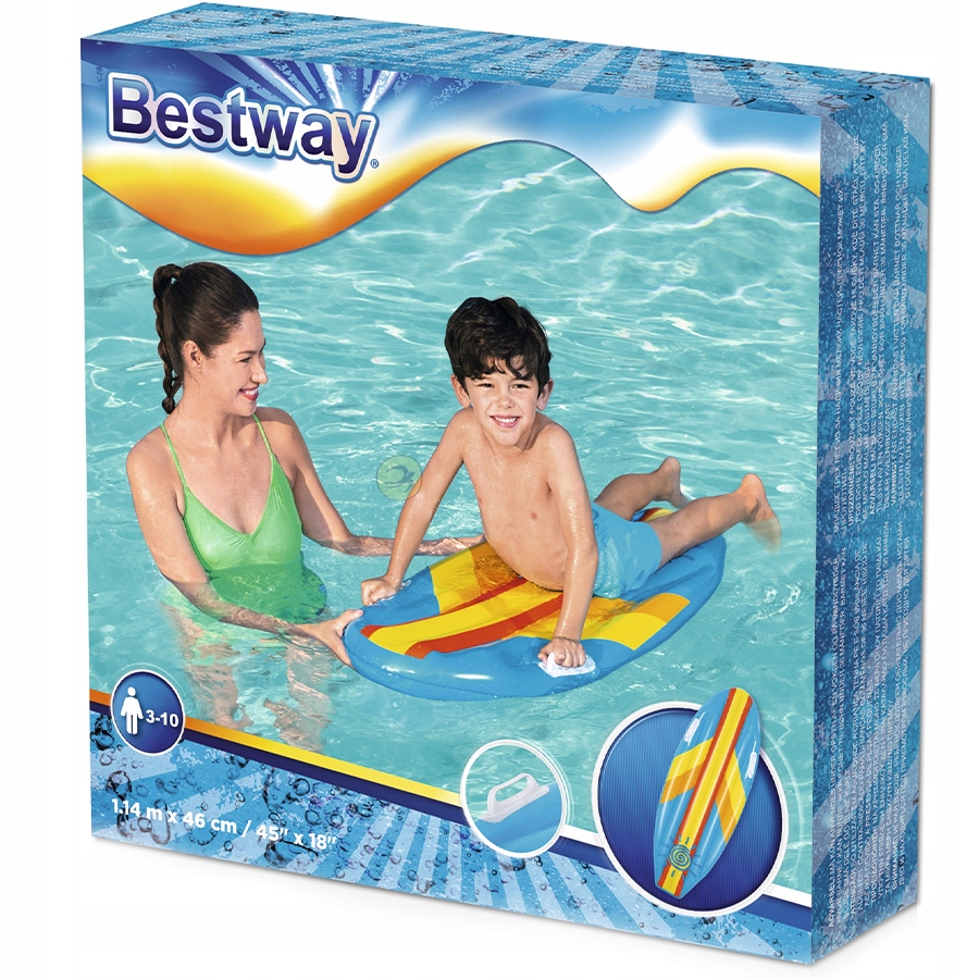 Доска для серфинга H2OGO! ™ Surfer Boy & Girl от Bestway® создан для движения, развлечений и прогулок вне дома. Доска для серфинга — это удивительный надувной поплавок для бассейна, позволяющий детям немного поплавать в бассейне или в море на пляже. Надувная доска для серфинга, представленная в двух разных цветах, идеально подходит для поездок на пляж. Surf Rider оснащен двумя прочными и простыми в использовании ручками, поэтому дети могут кататься на нем, не соскальзывая при намокании. Плескаться в воде под солнцем еще никогда не было так приятно!
