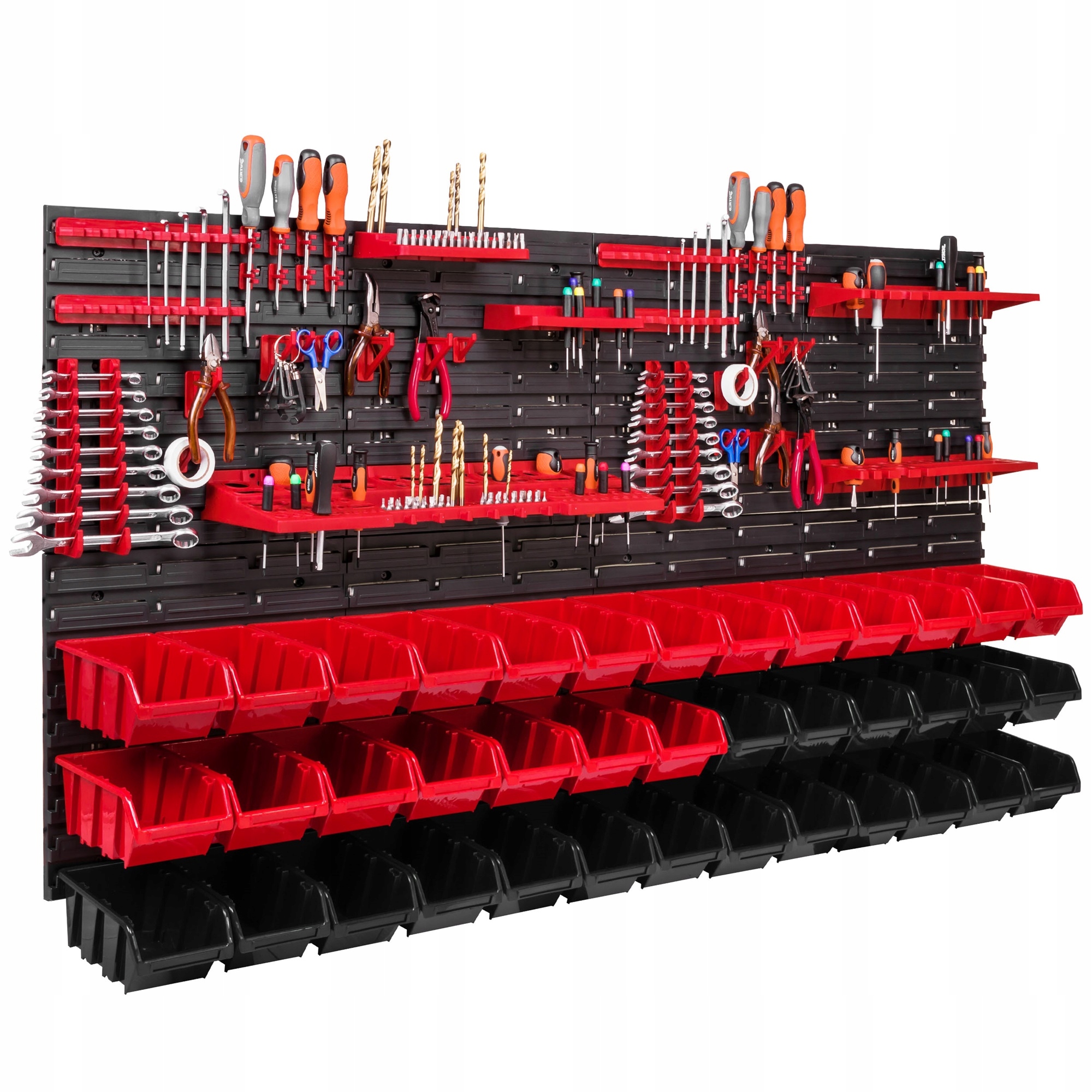 - Наборы ручек: Включены: полка инструмента 580 x 158 x 67 мм, 2x полка инструмента 384 x 111 x 50 мм, полка инструмента 190 x 111 x 32 мм, полка инструмента 180 x 111 x 32 мм, 8 держателей ключей (4 вертикали, 4 горизонтали), 16 ручек Для отверток, небольших инструментов, 8 вешалков 5,5 см, 8 вешалок 3,5 см. > 1