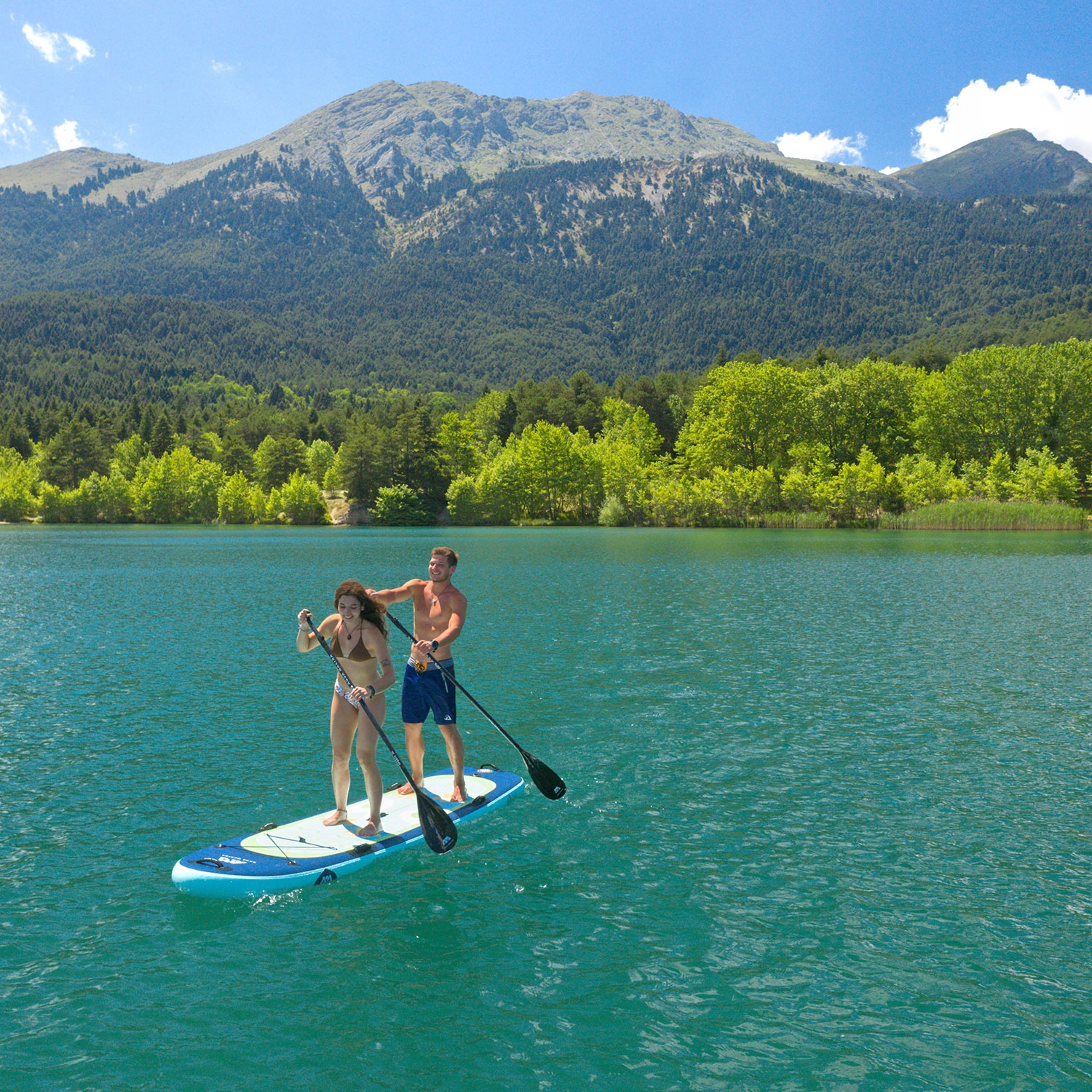 Доска Aqua Marina предназначена для использования на озерах, реках и морских побережьях. Благодаря своим размерам – длине 365 см, ширине 86 см и высоте 15 см – он гарантирует устойчивость и маневренность. Она идеально подходит для совместного плавания в качестве доски SUP, что делает ее идеальным компаньоном для семейных дней, проведенных на воде.