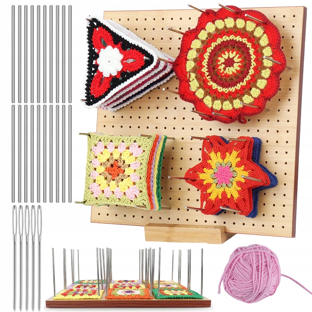 ДОСКА ДЛЯ ВЯЗАНИЯ КРЮЧКОМ С 25 СТАЛЬНЫМИ БУЛАВКАМИ, БАМБУКОВЫЙ ИНСТРУМЕНТ DIY