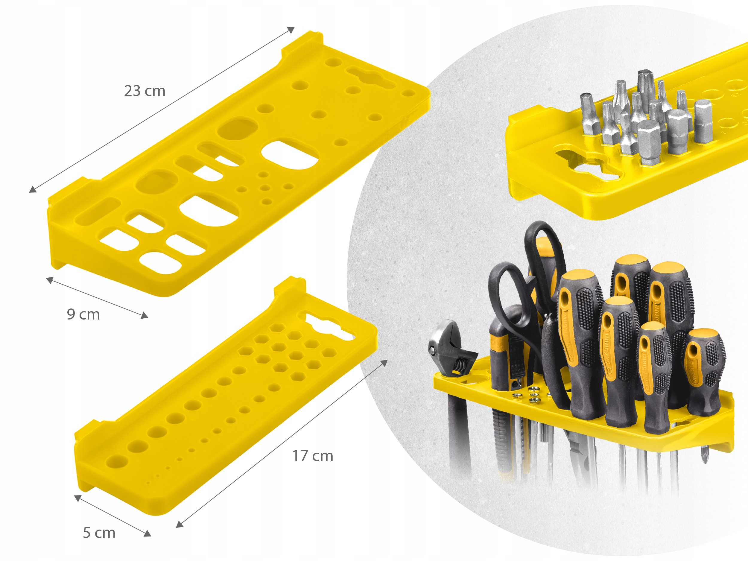 Набор содержит 2 полки, размея 23 x 5 см и 2 полки, размером 17 x 5 см. h2> - Большая полка b> идеально подходит для хранения навесных домов и других аксессуаров мастерской. руководство.