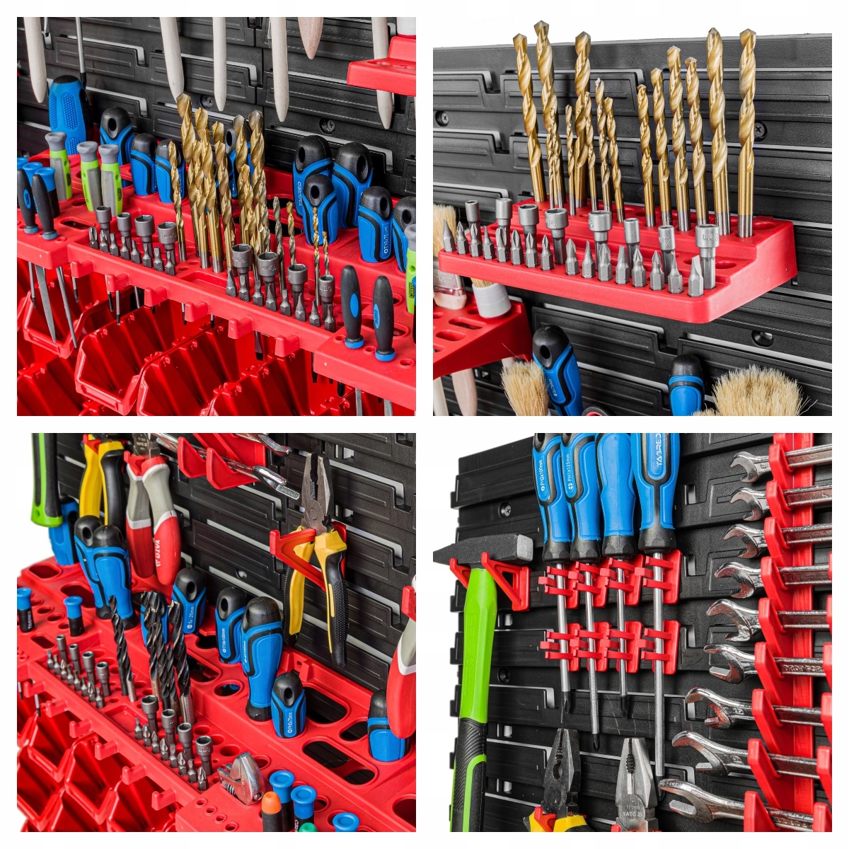 Отличным дополнением являются прочные держатели и полки для инструментов, которые помогут вам дольше хранить инструменты. инструменты, такие как молоток, дрели, гаечные ключи, отвертка или плоскогубцы. Спасибо ручки, самые важные инструменты всегда будут под рукой и займут гораздо меньше места место в мастерской. Практично и великолепное решение.