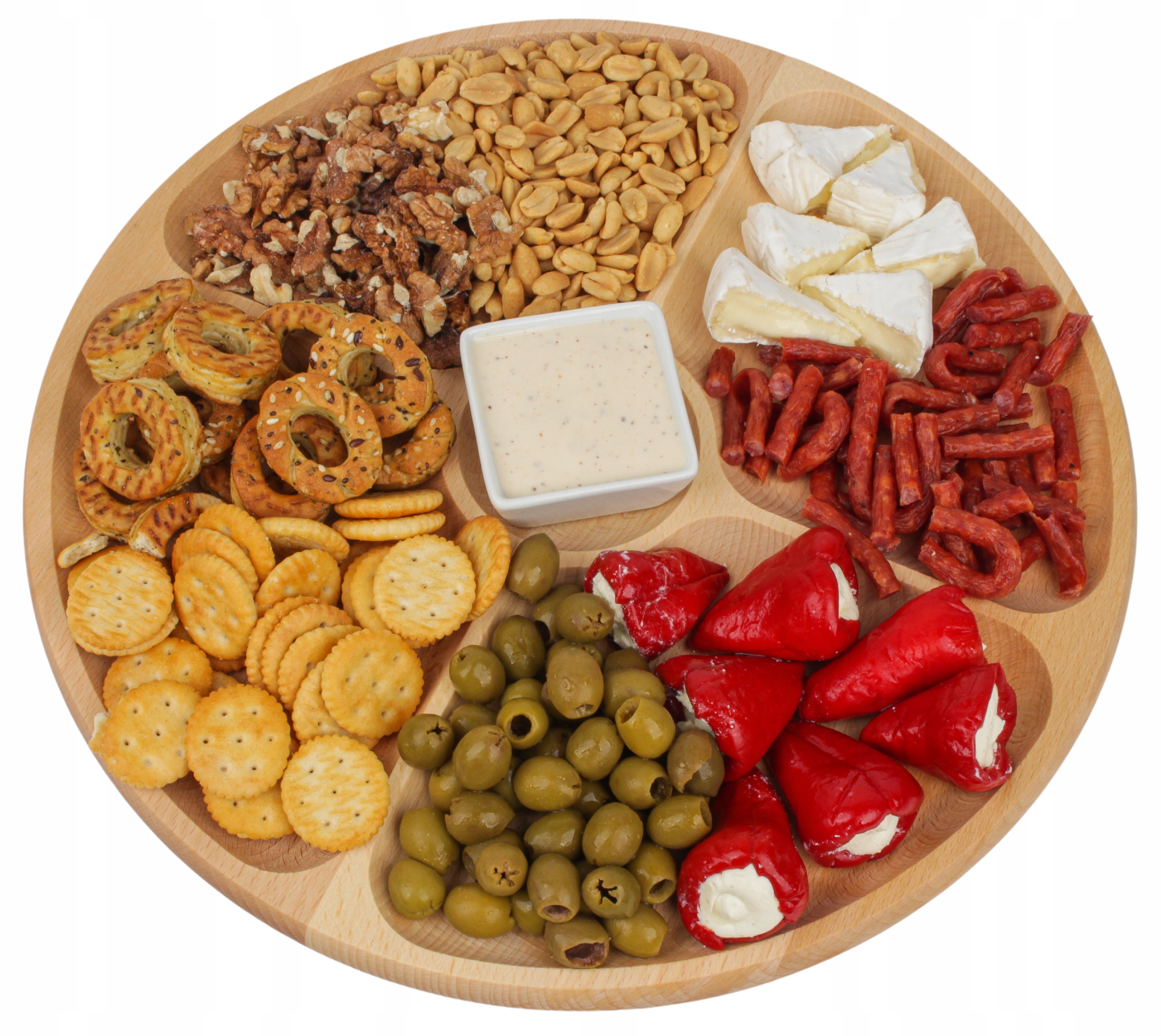 ▶️ Вращающаяся деревянная доска с четырьмя отделениями для подачи закусок и сыра