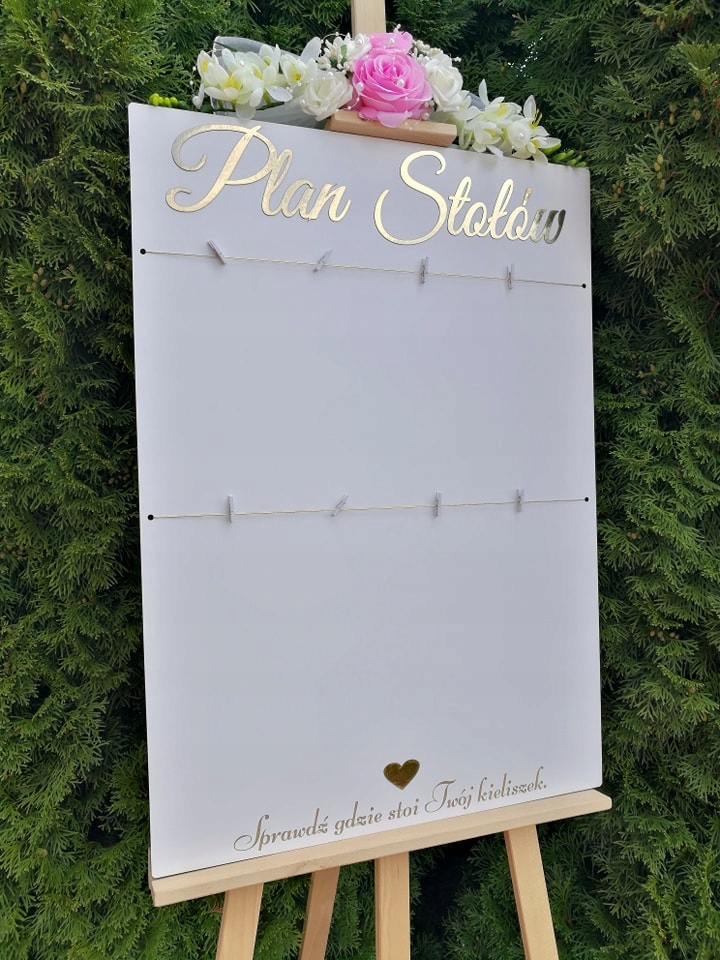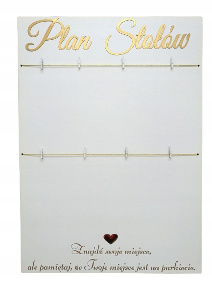 Надпись Table Plan и сердце выполнены из золота или серебра (на выбор), а нижняя надпись выгравирована.