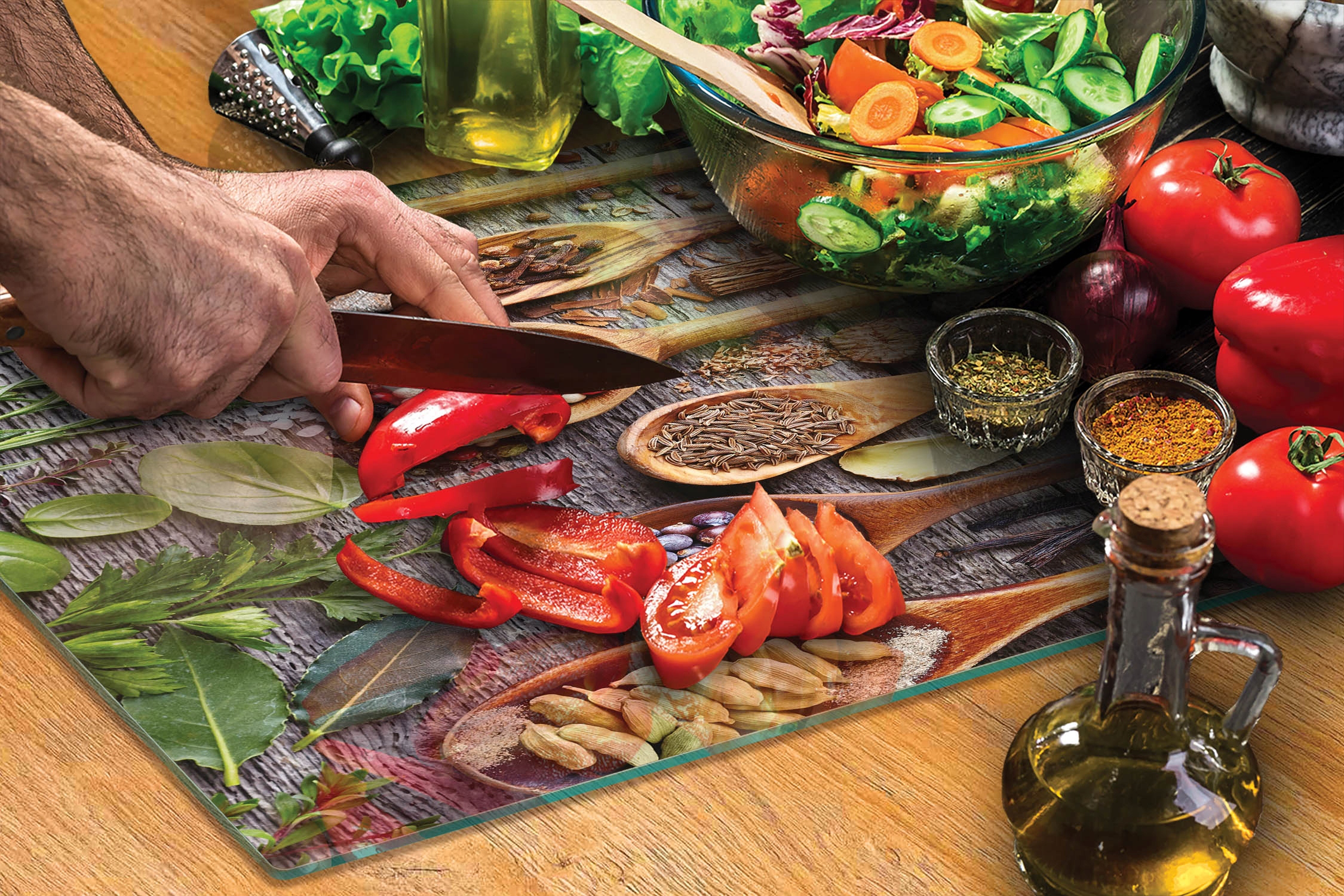 ДОСКА РАЗДЕЛОЧНАЯ СТЕКЛЯННАЯ 40х30 СПЕЦИИ ЗАКАЛЕННОЕ СТЕКЛО