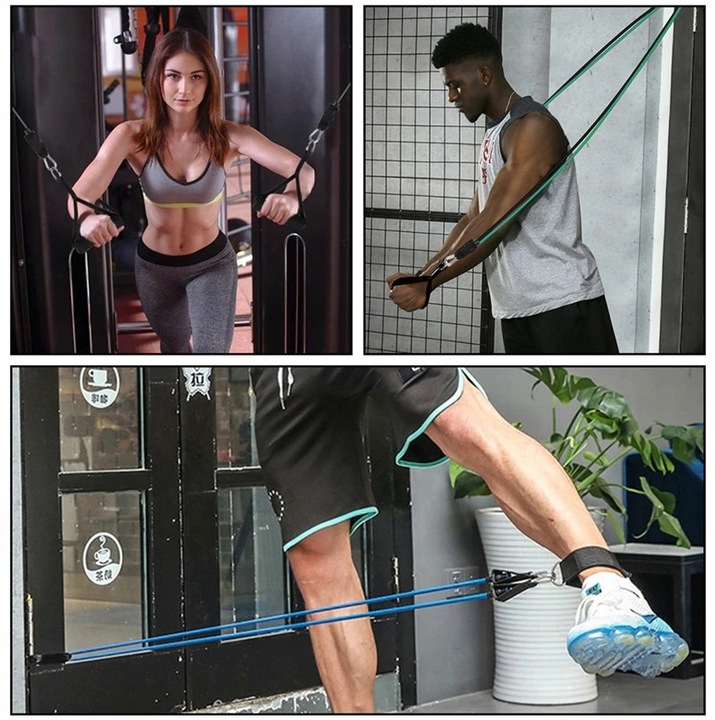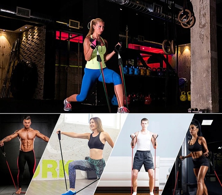 Предлагаемый комплект оснащен 5 резинками с разной нагрузкой: