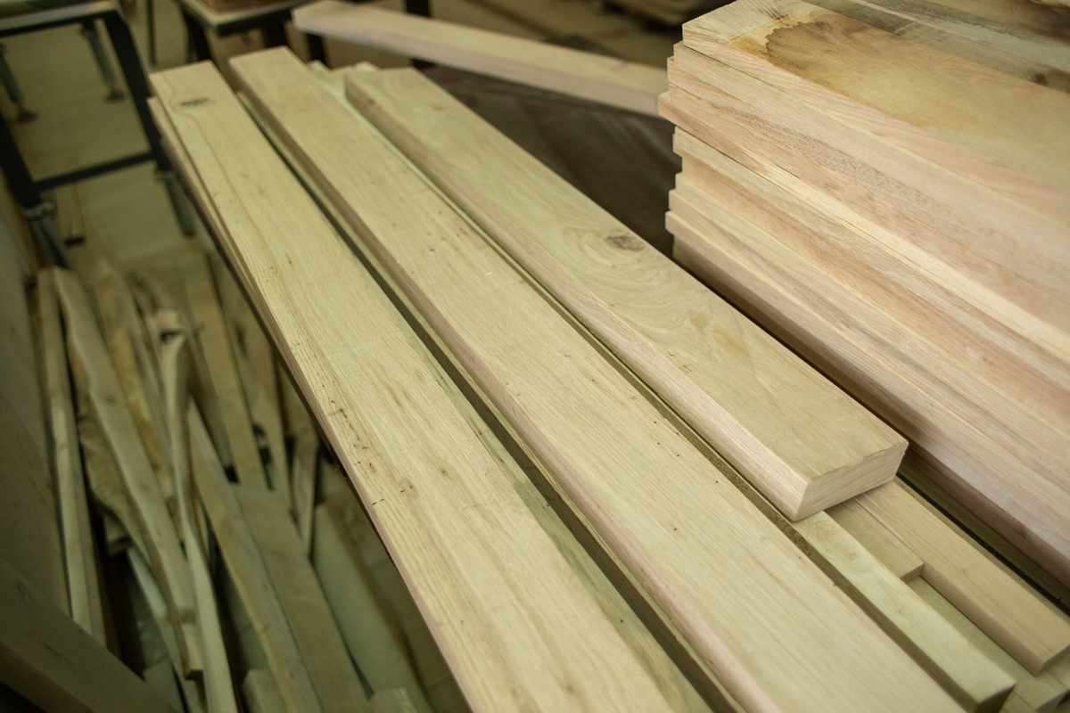 Столярный цех производит изделия из древесины польского производства, основное сырье – древесина дуба. Это 100% толщина, массив дерева, без шпона, мебельного щита, шпона и т.д. Древесину мы получаем из профессиональных сушильных камер, а в наших помещениях имеется профессиональная вентиляция для поддержания соответствующих параметров сырья.