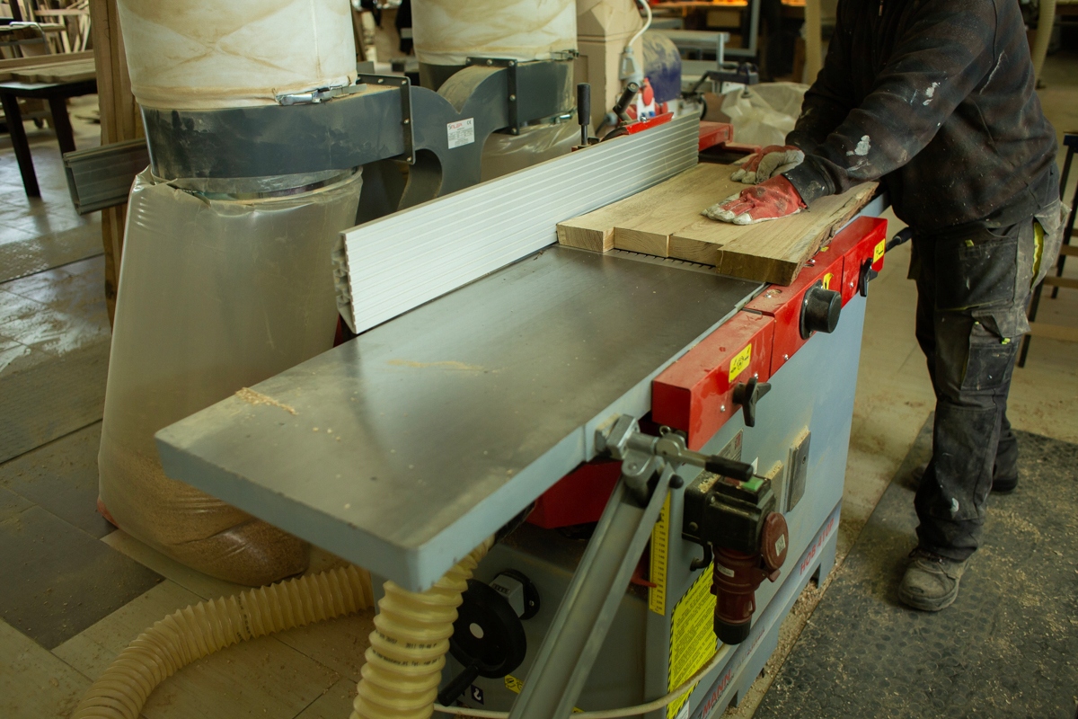 Столярный цех производит изделия из древесины польского производства, основное сырье – древесина дуба. Это 100% толщина, массив древесины, без шпона, мебельного щита, шпона и т.д. Древесину мы получаем из профессиональных сушильных камер, а в наших помещениях имеется профессиональная вентиляция для поддержания соответствующих параметров сырья.