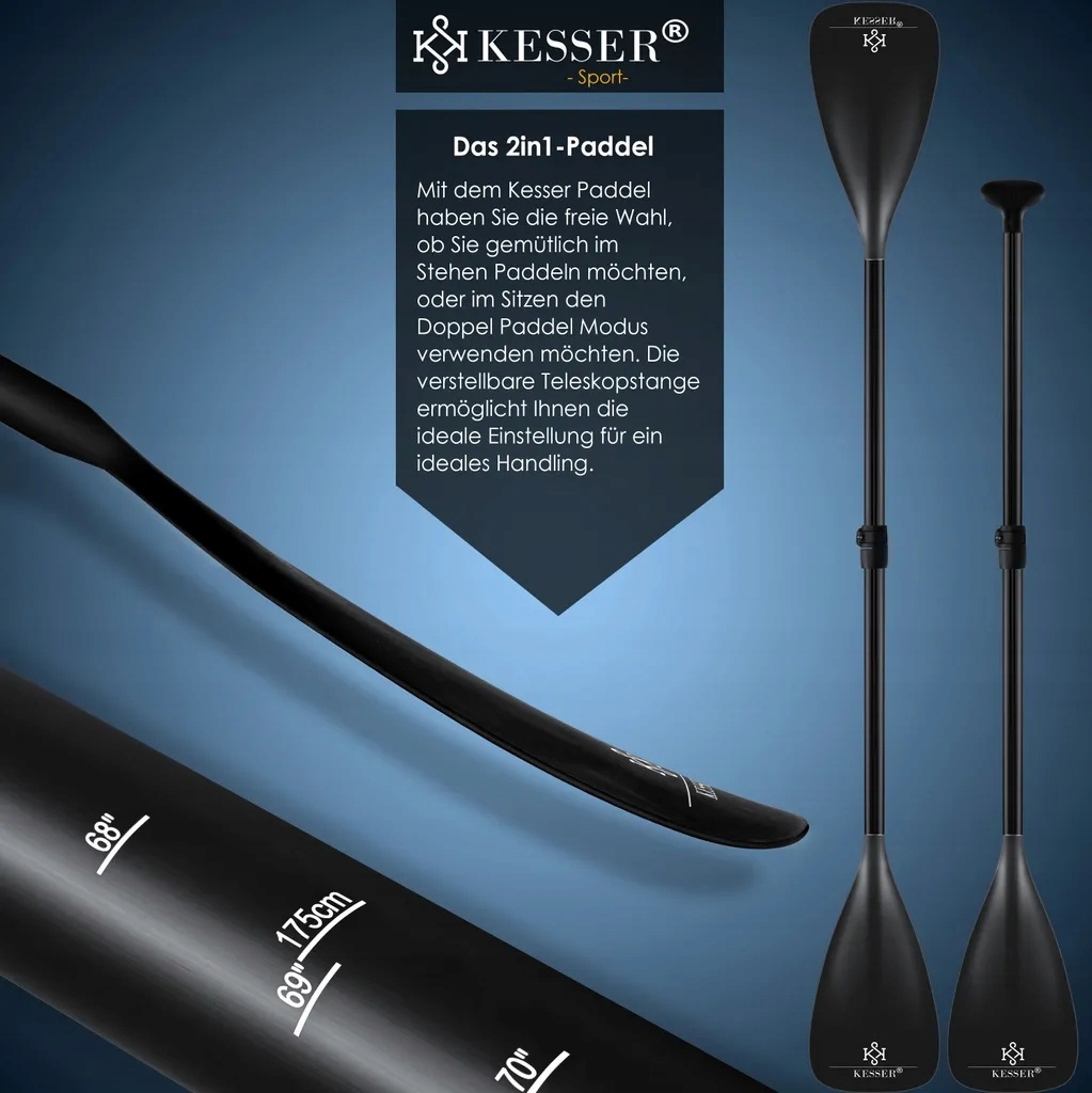 Light Double Paddler 2 в 1 Вы можете просто сложить и настроиться на свой собственный размер тела. У вас есть свобода выбирать, хотите ли вы комфортно грести, стоять или использовать двойной массовый режим во время сидения. Регулируемая телескопическая палочка позволяет создать идеальную настройку для оптимальной работы.